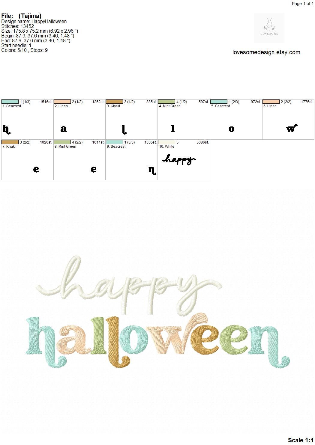 Happy Halloween 5x7 Machine Embroidery Design, Retro Style Funky Autumn Colorful Fall Tshirt Embroidery File | Lovesome Design