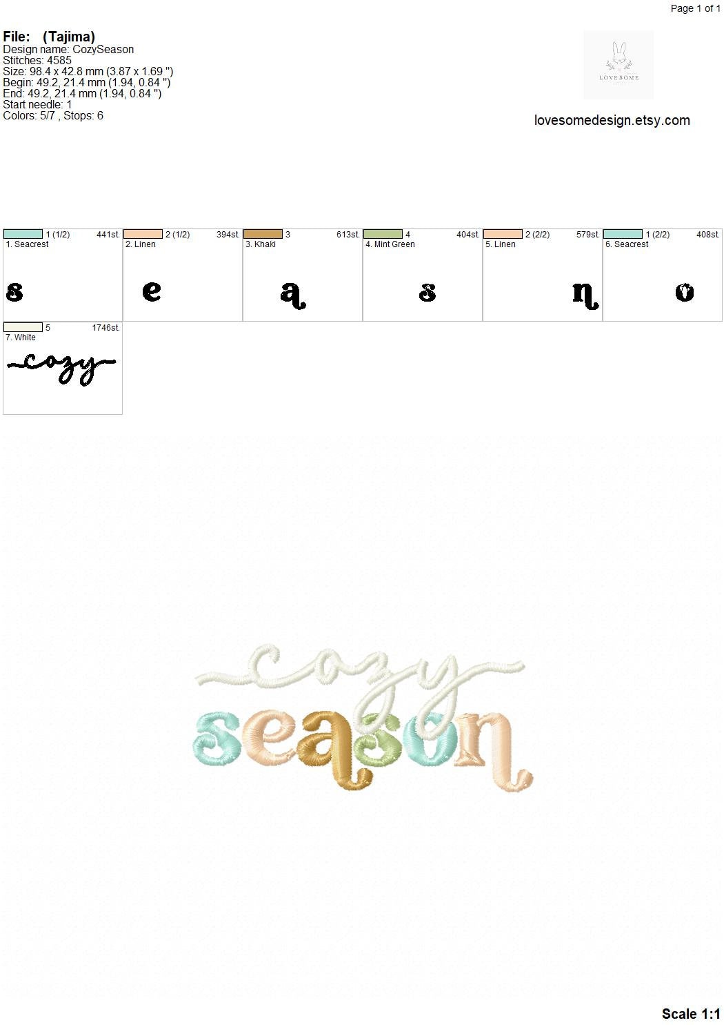 Cozy Season 4inch Machine Embroidery Design, Retro Style Funky Autumn Colorful Fall Tshirt Embroidery File | Lovesome Design