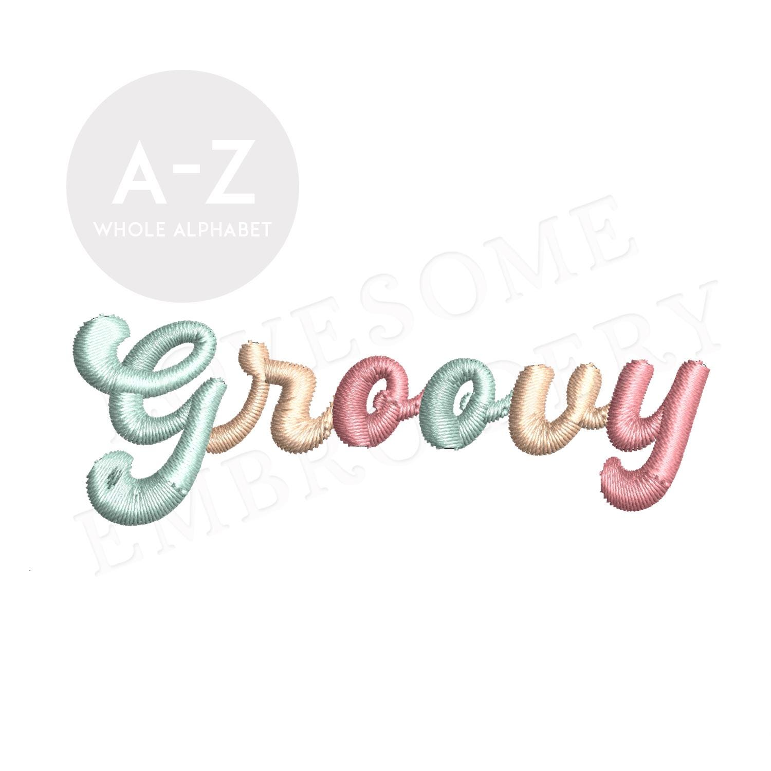 Groovy Script 0.75inch Fill Stitch Font A-Z Machine Embroidery Font Digital Download | Lovesome Design