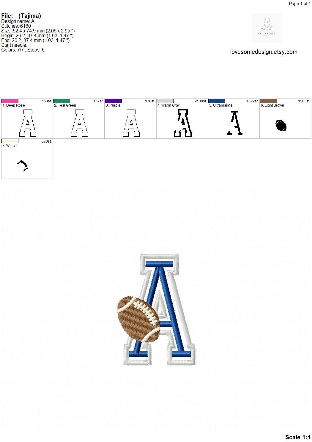 American Football 3inch Applique Satin Font A-Z Machine Embroidery Sports Letters, Applique Varsity Embroidery Font | Lovesome Design