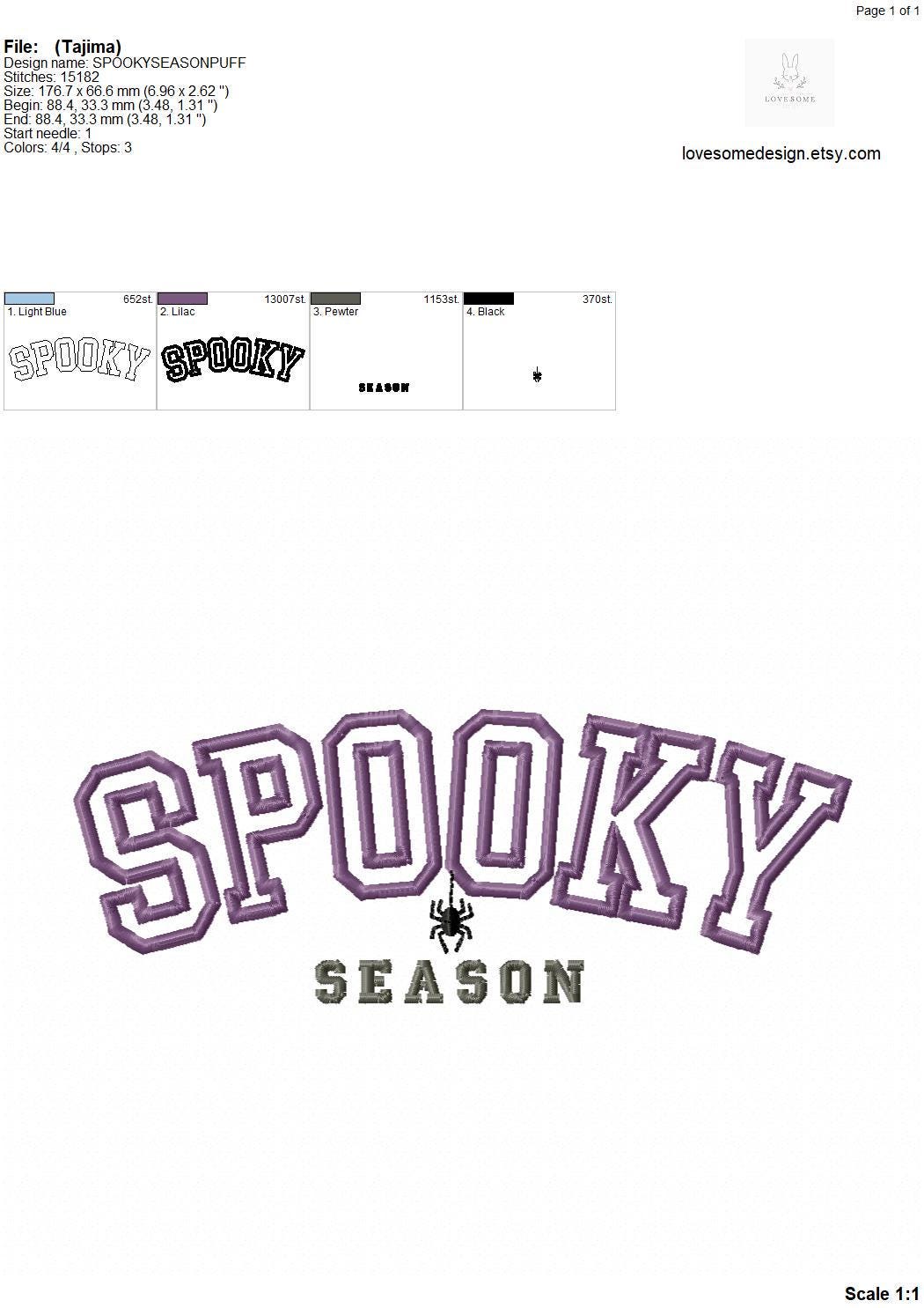 Spooky Season 7inch Puff Machine Embroidery Design, Halloween Fall Sweatshirt Sports Tshirt Puff 3D Embroidery File | Lovesome Design