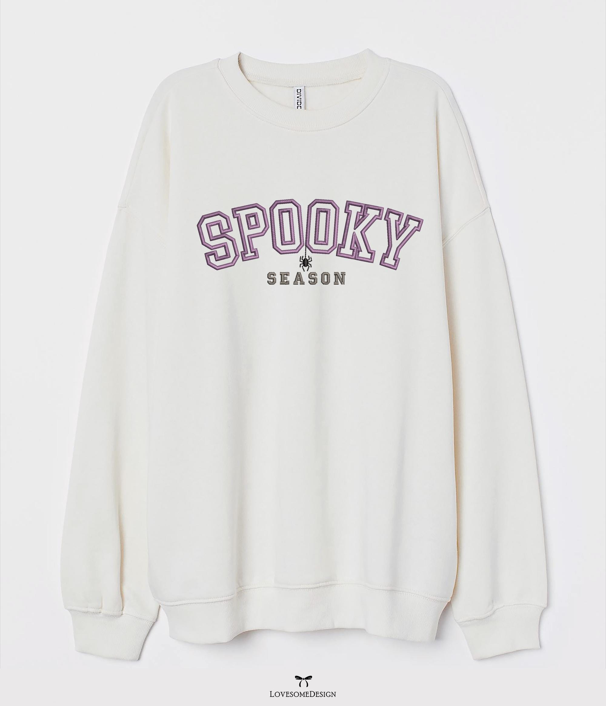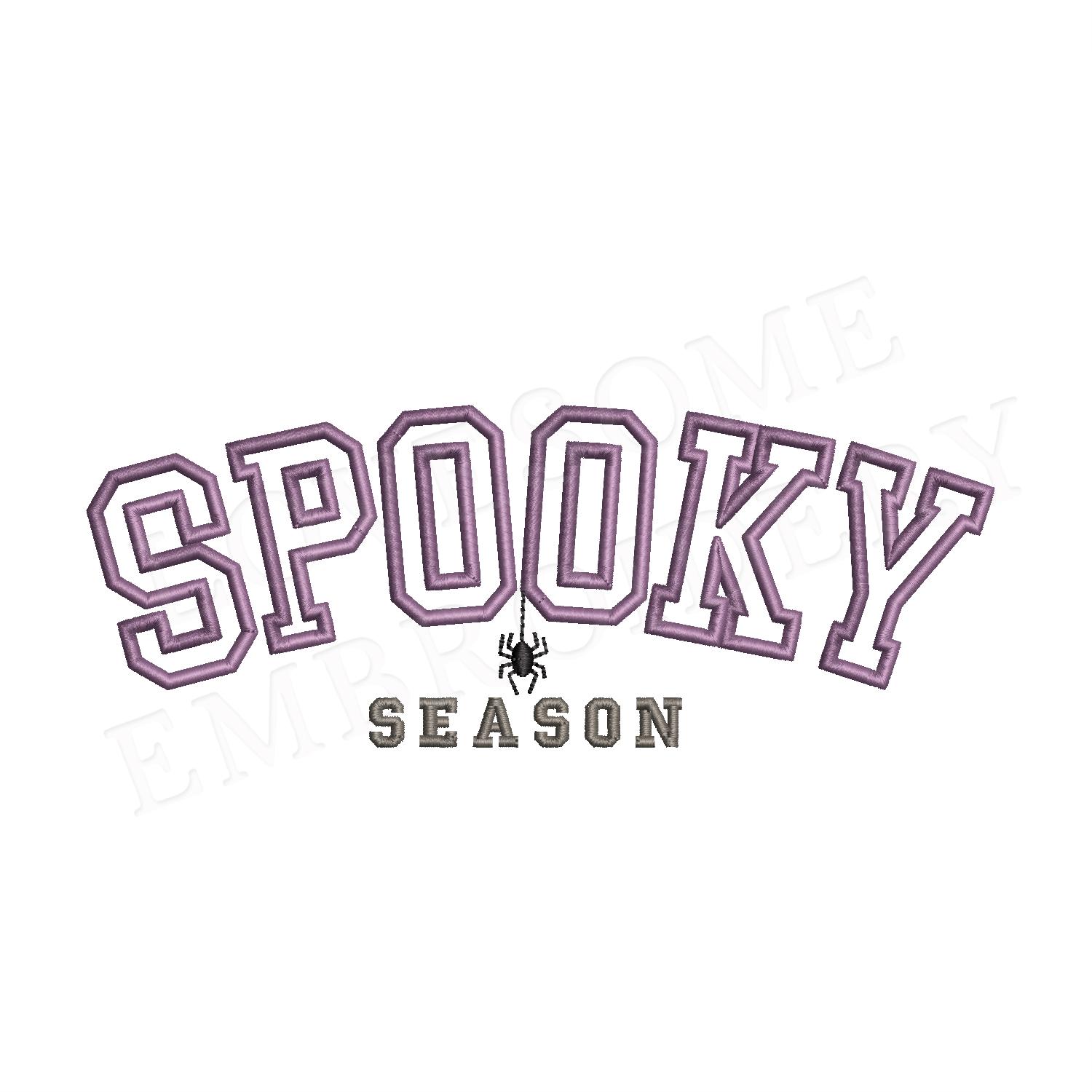 This listing features a machine embroidery design of puff 3D lettering "Spooky Season" with an optional spider (you may skip the step of the spider on your machine) for stylish halloween sweatshirt or sports tshirt embroidery in 7inch size.