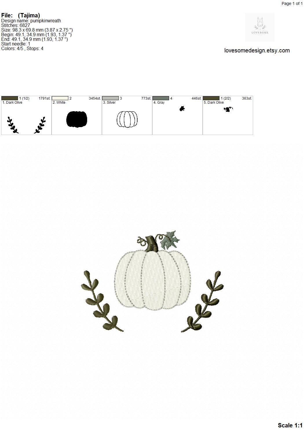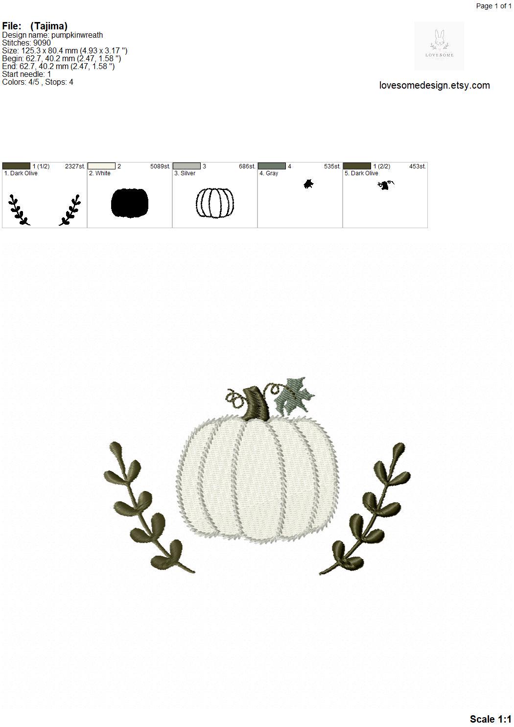 Stylish Pumpkin Wreath Multisize Embroidery Design in three sizes, Thanksgiving Autumn Fall Machine Embroidery | Lovesome Design