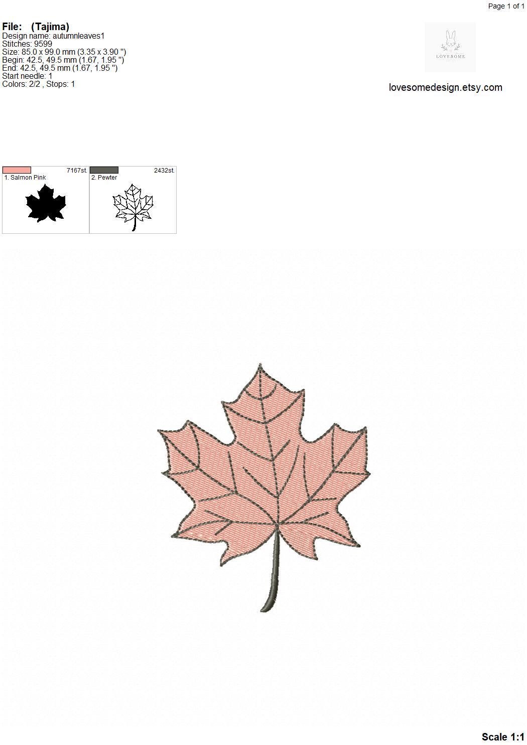 Stylish Maple Leaf Multisize Embroidery Design in three sizes, Thanksgiving Autumn Fall Machine Embroidery | Lovesome Design