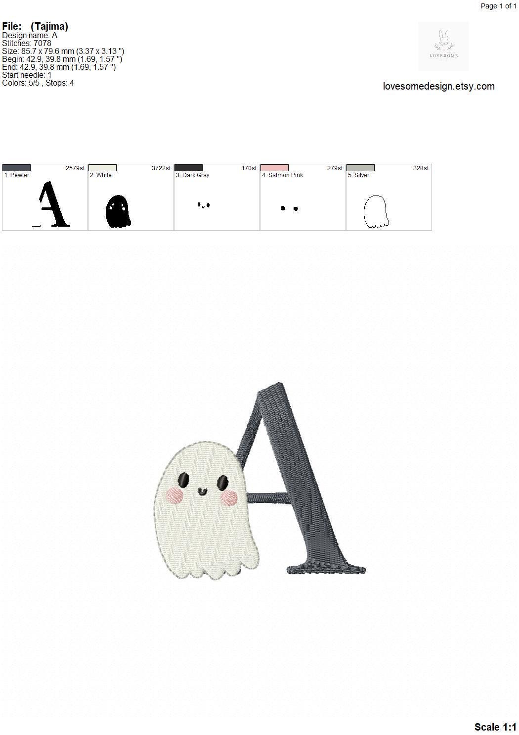 Cute Ghost Alphabet 3.5inch A-Z Machine Embroidery Font Digital Download | Lovesome Design