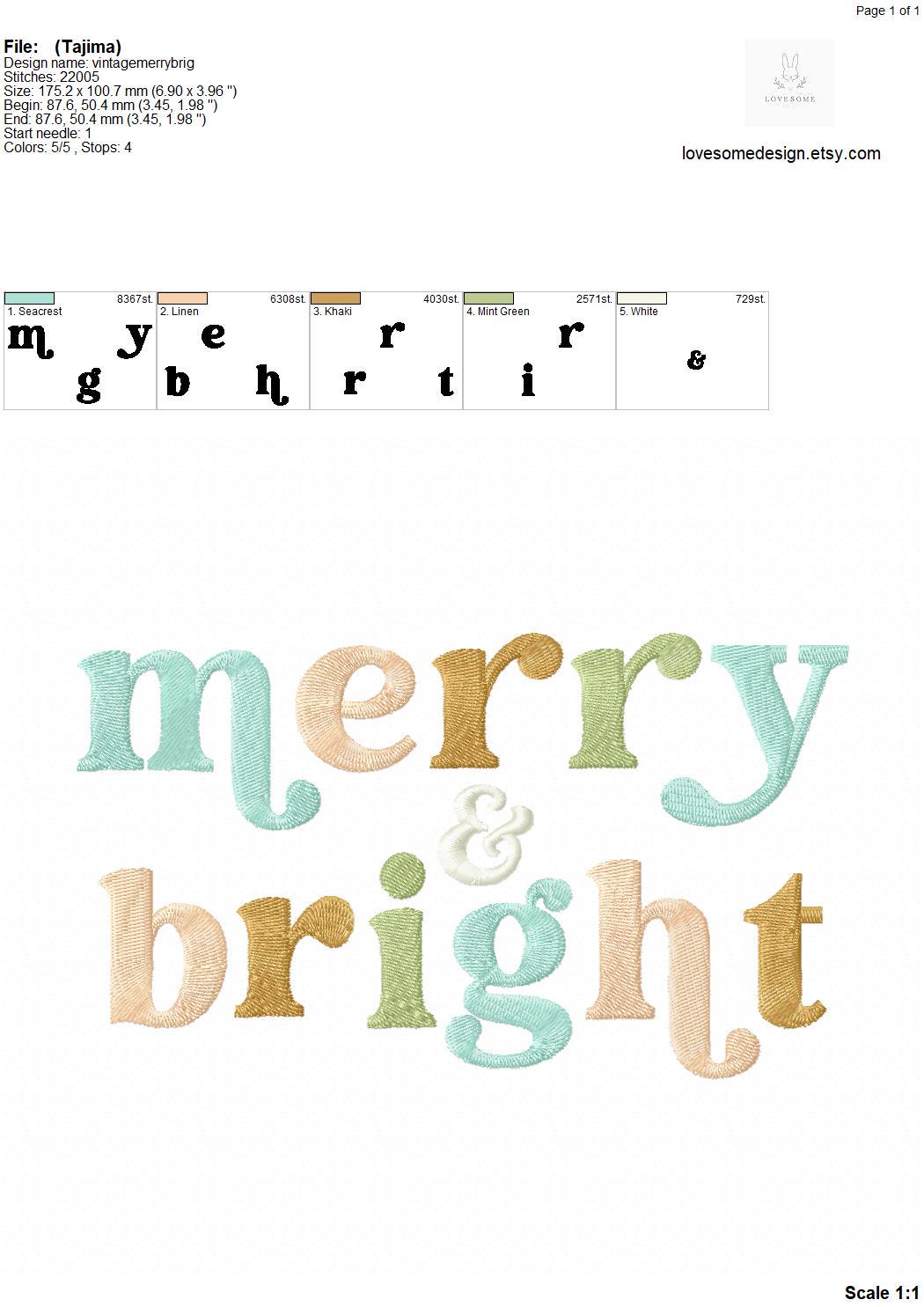 Merry Bright 5x7 Machine Embroidery Design, Retro Style Christmas Funky Winter Colorful Tshirt Design Embroidery File | Lovesome Design