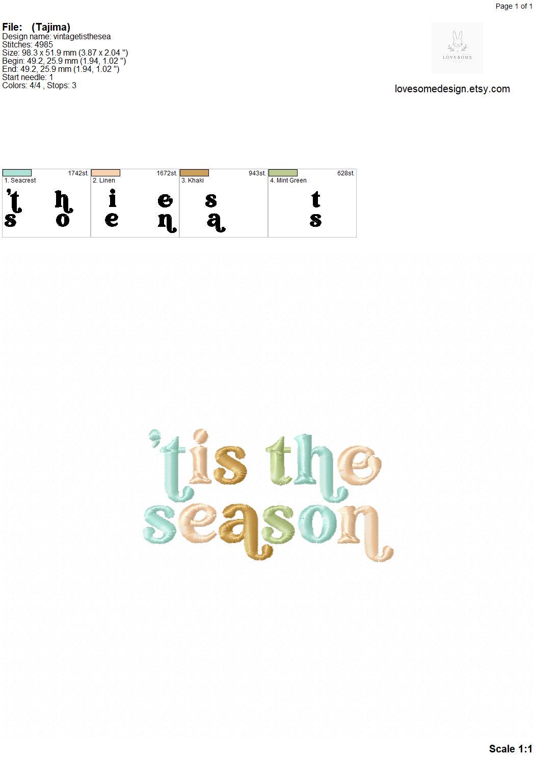 Tis The Season 4inch Machine Embroidery Design, Retro Style Christmas Funky Winter Colorful Tshirt Design Embroidery File | Lovesome Design