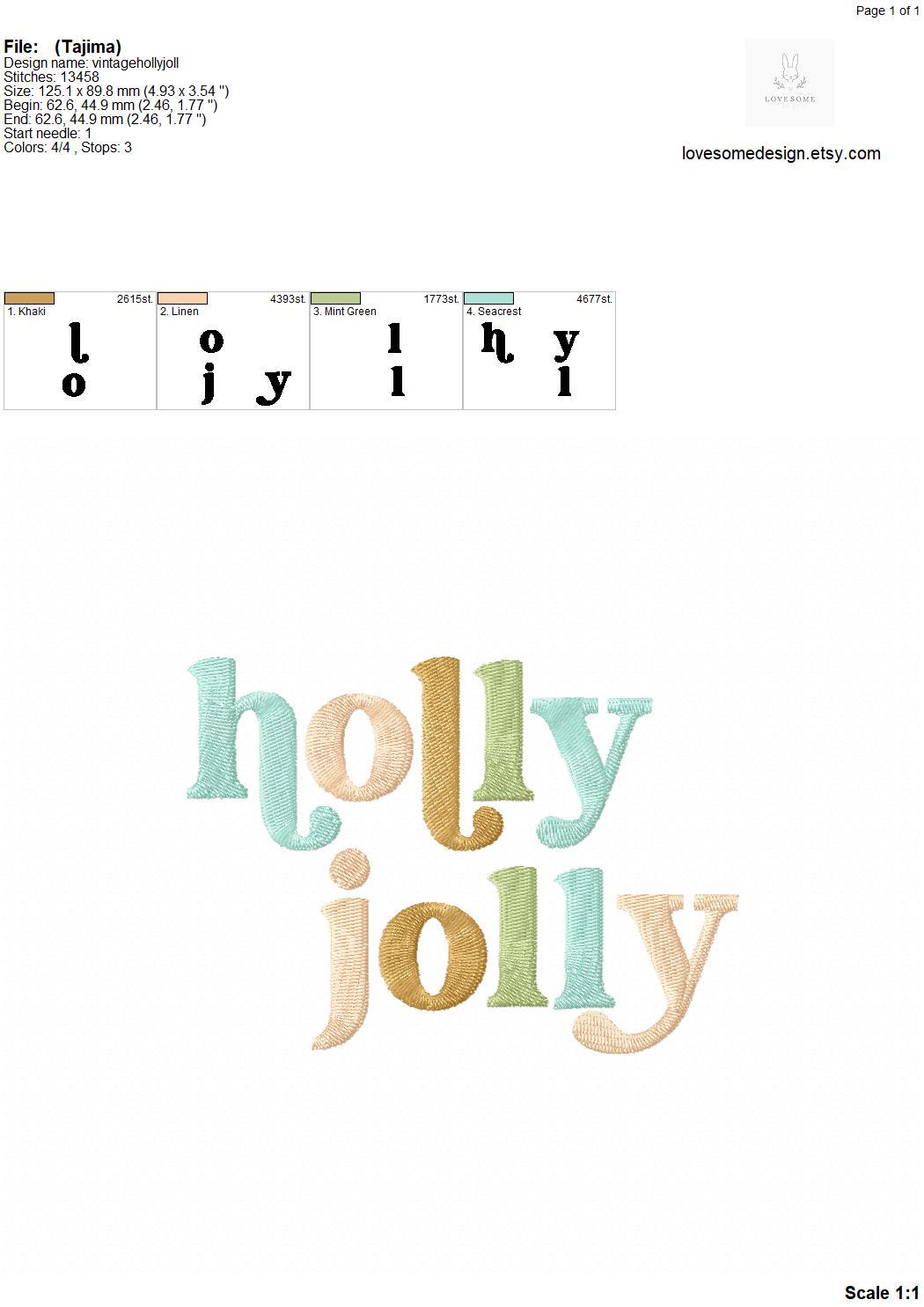 Holly Jolly 5inch Machine Embroidery Design, Retro Style Christmas Funky Winter Colorful Tshirt Design Embroidery File | Lovesome Design