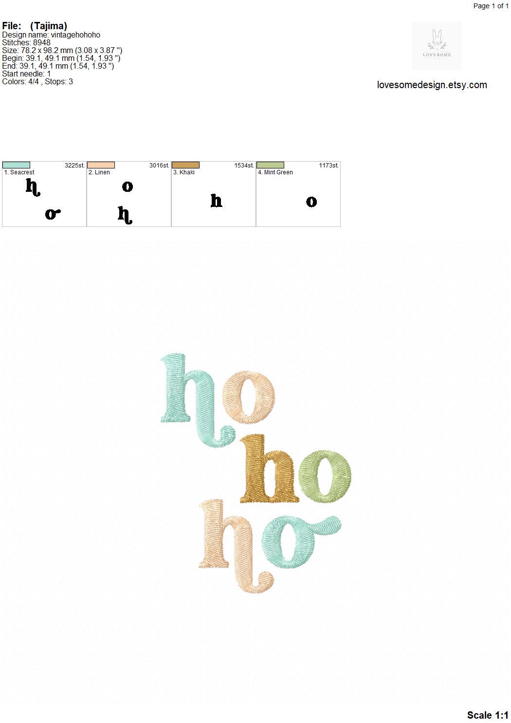 This listing features a machine embroidery design of lettering "'ho ho ho" for retro style funky winter sweatshirt or groovy style christmas sweatshirt embroidery in 4inch size.