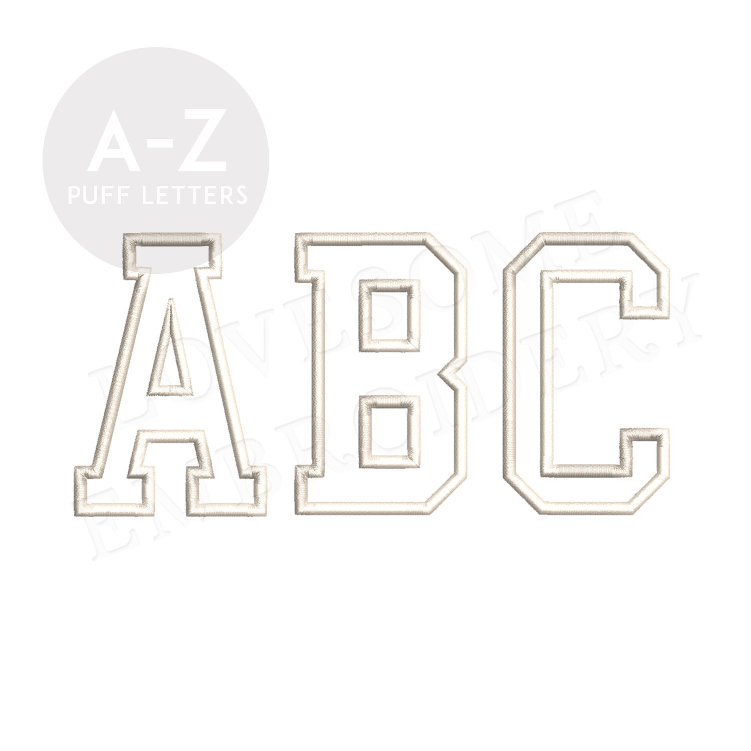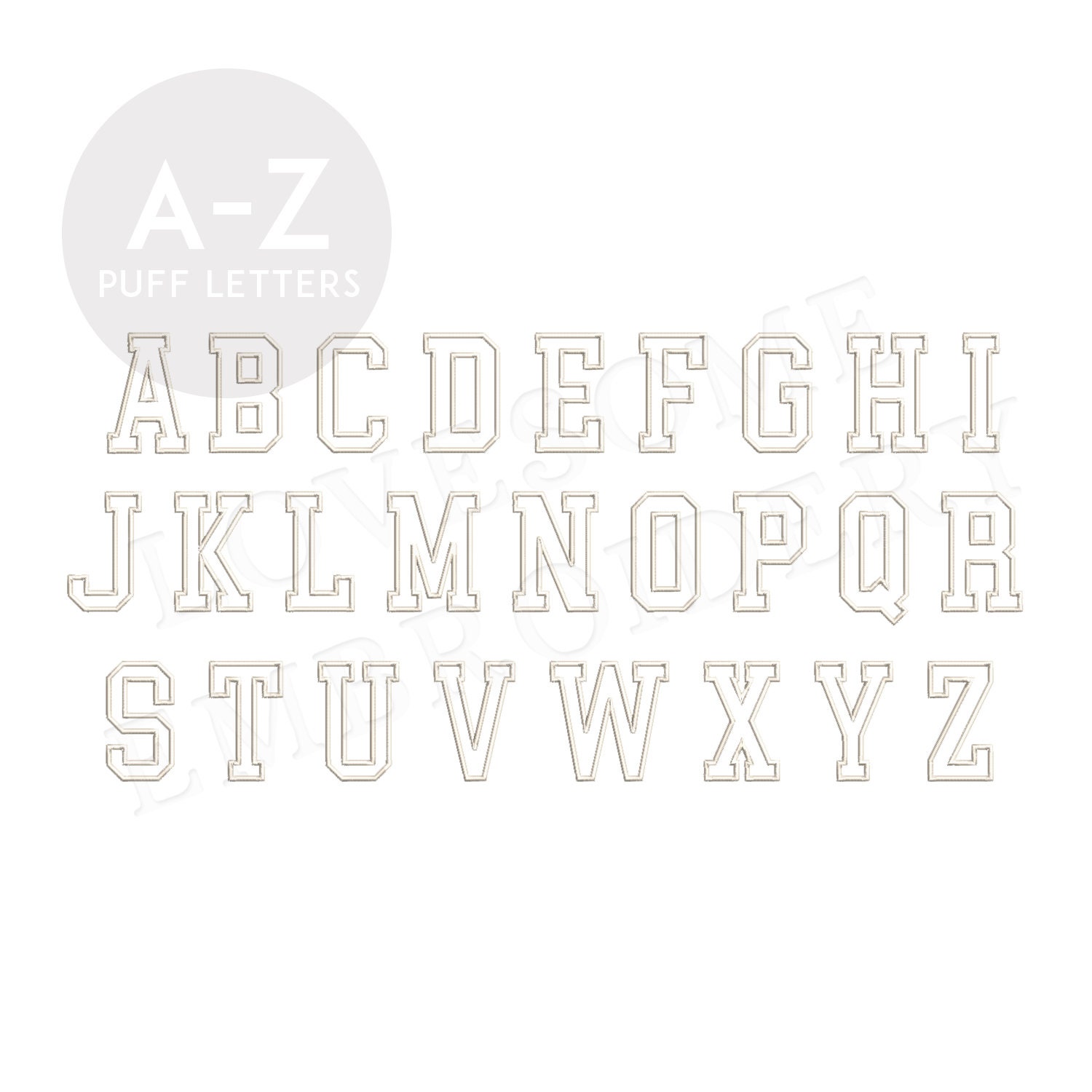 College Outline 2.5inch Puff Font A-Z Machine Embroidery Sports Letters, Puff 3D Foam Embroidery Font Digital Download | Lovesome Design