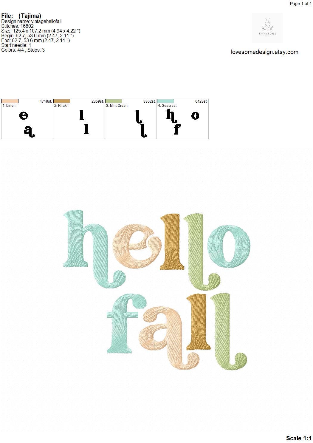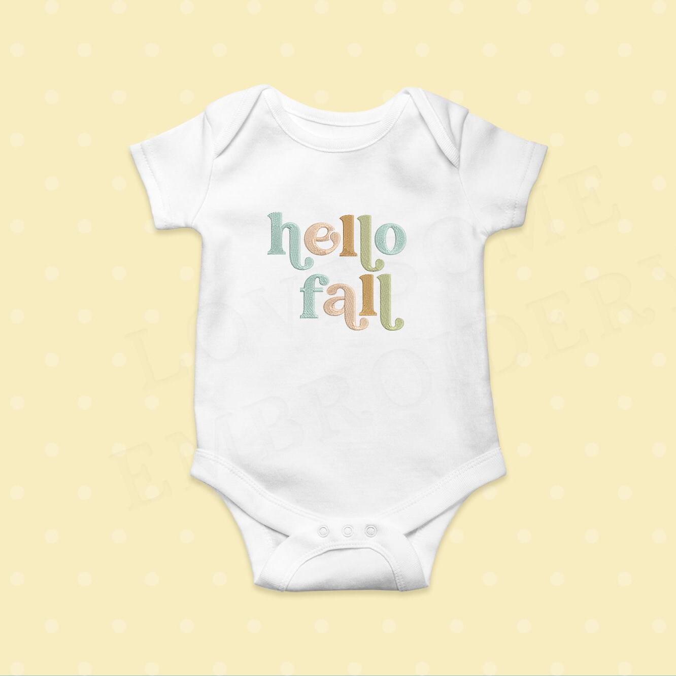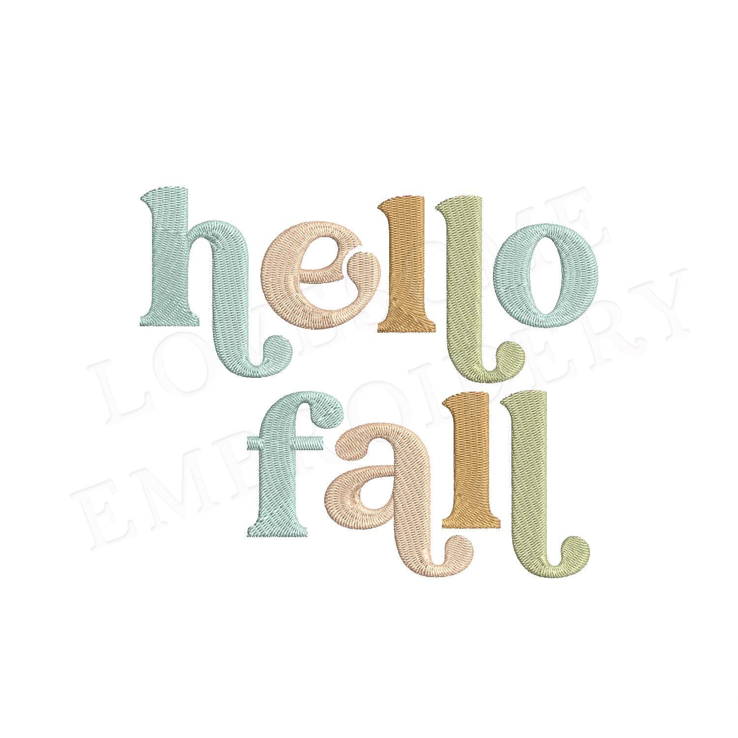 Hello Fall 5inch Machine Embroidery Design, Retro Style Funky Autumn Colorful Fall Tshirt Embroidery File | Lovesome Design