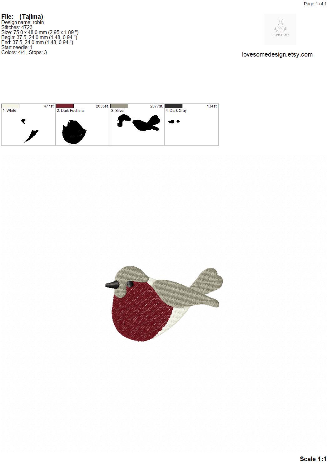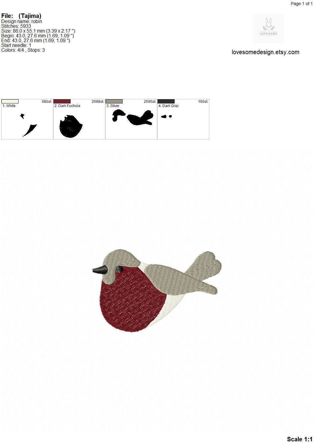 Cute Robin Big Multisize Embroidery Design, Classical Christmas Embroidery, Cute Robin Bird Machine Embroidery File | Lovesome Design