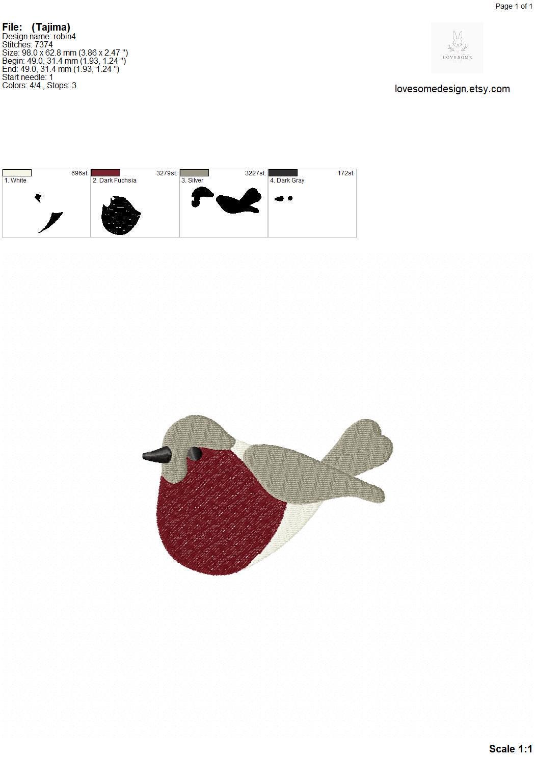 Classical cute robin bird embroidery design, fancy holiday decorative robin bird embroidery file in three sizes appr. in 3inch, 3.5inch and 4inch size.