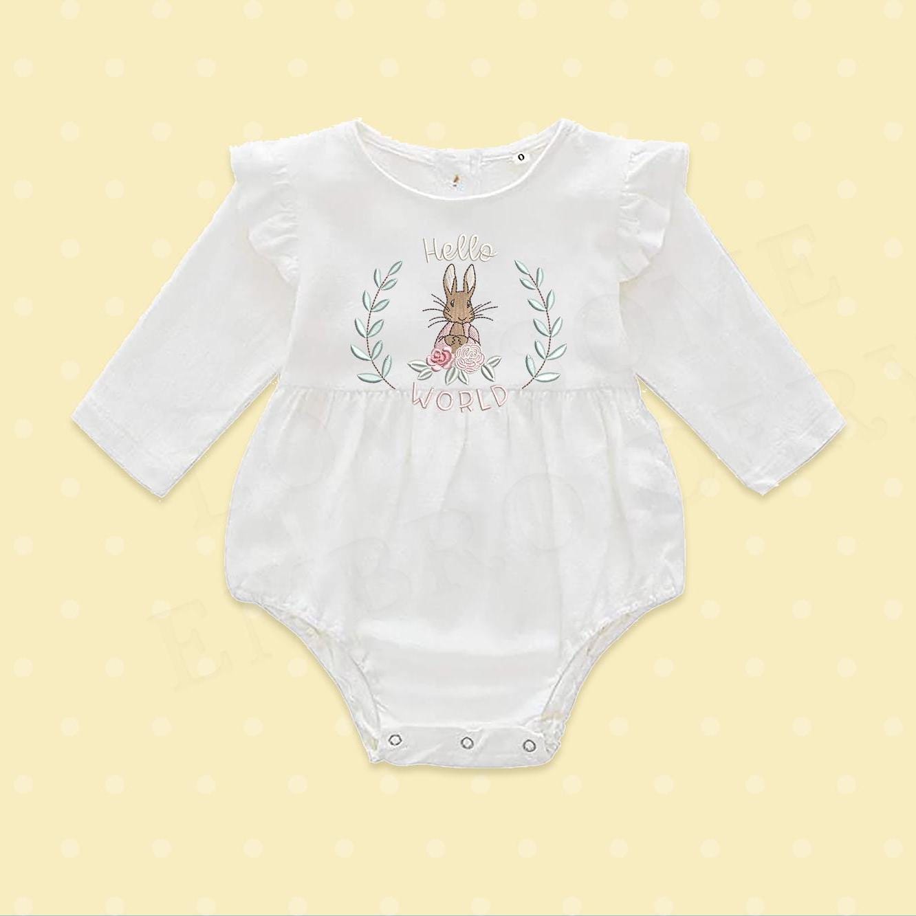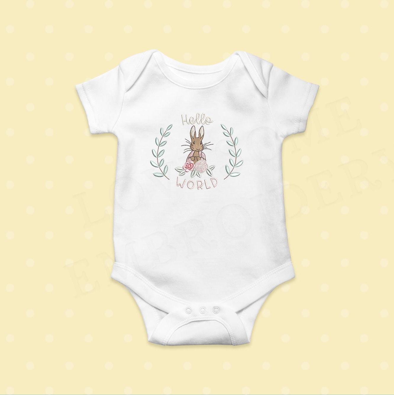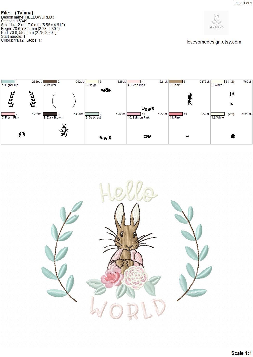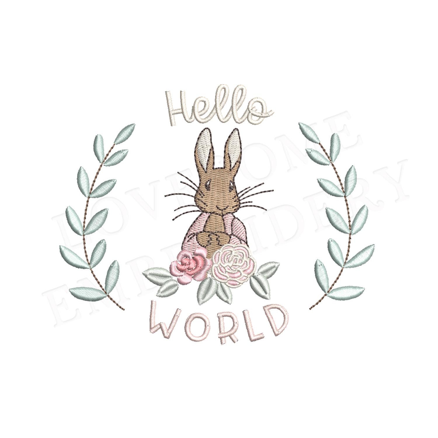 Hello World 5x7 Flopsy Rabbit Machine Embroidery Design Digital Download | Lovesome Design