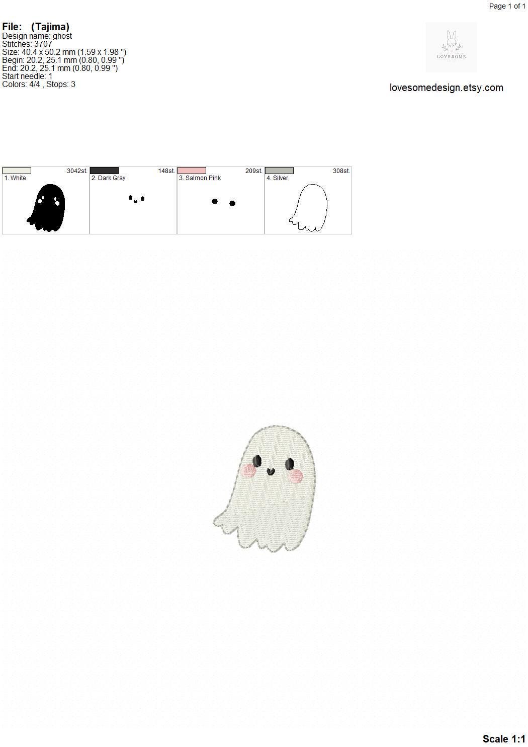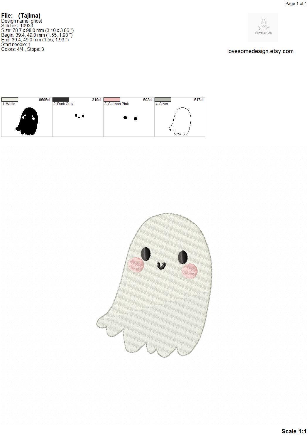 This listing includes a cute ghost file for machine embroidery in three sizes, each appr. in 2inch, 3inch and 4inch size.
