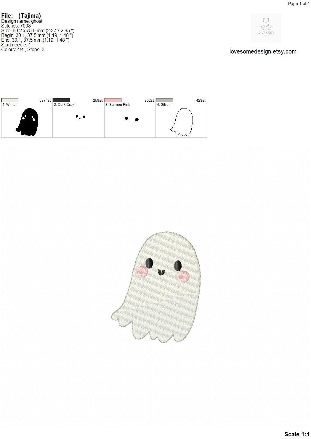 Cute Ghost Multisize Embroidery Design, Halloween Machine Embroidery Digital File | Lovesome Design