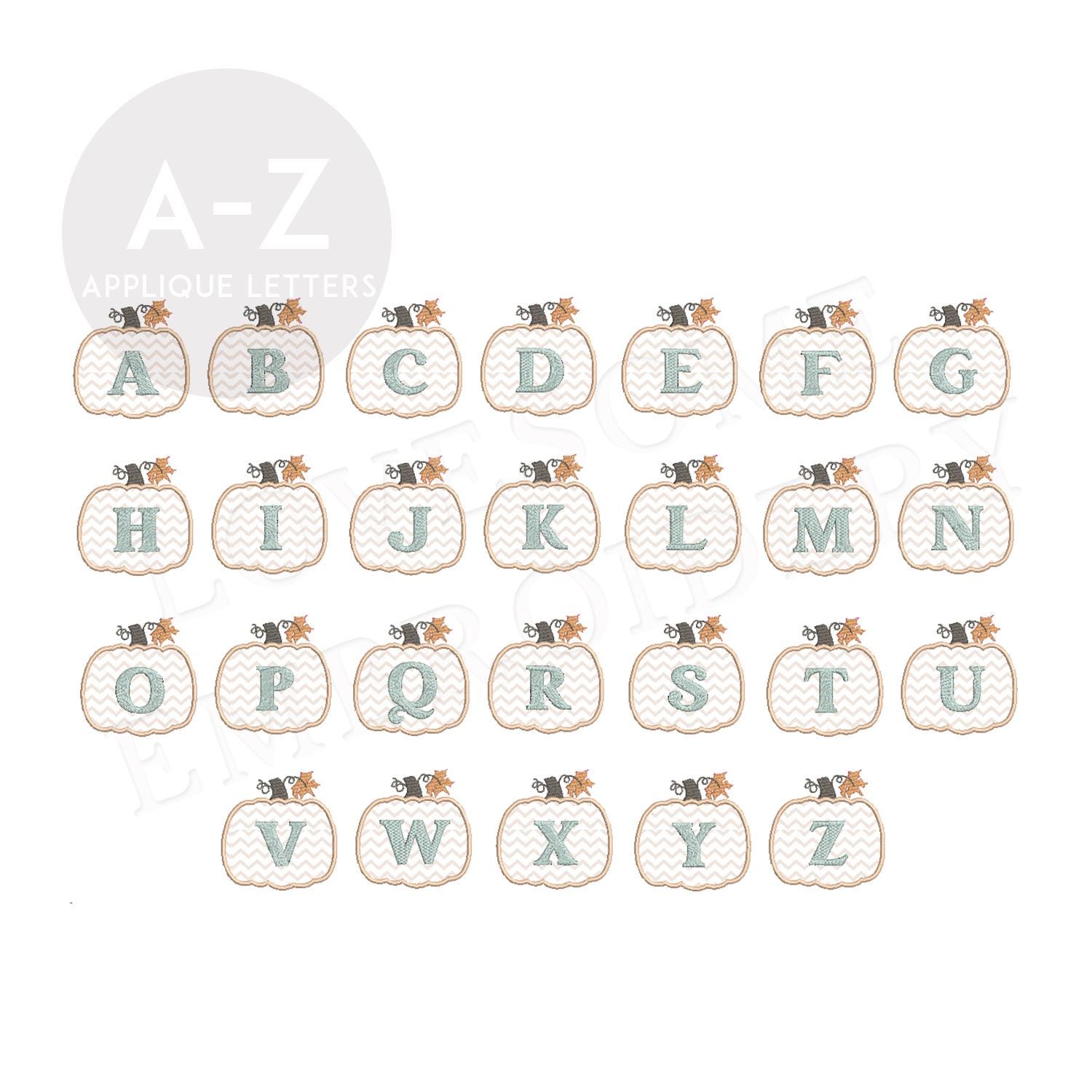 Pumpkin Applique Alphabet 3inch A-Z Machine Embroidery Font Digital Download | Lovesome Design