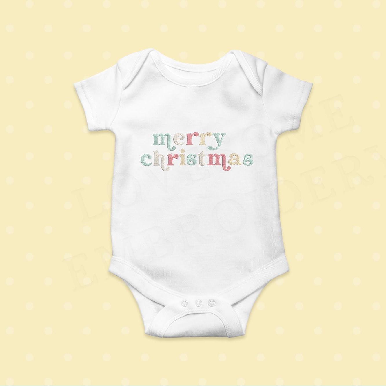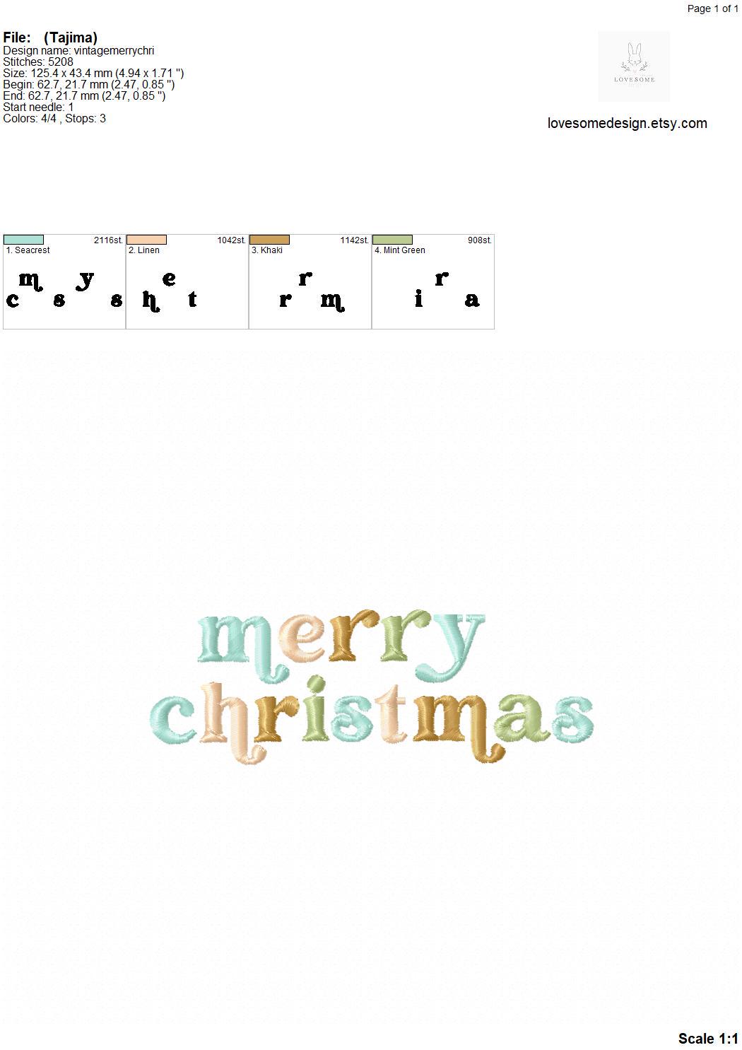 Merry Christmas 5inch Machine Embroidery Design, Retro Style Christmas Funky Winter Colorful Tshirt Design Embroidery File | Lovesome Design