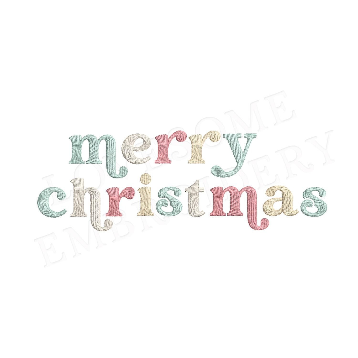 This listing features a machine embroidery design of lettering "merry christmas" for retro style funky winter sweatshirt or groovy style christmas sweatshirt embroidery in 4inch size.