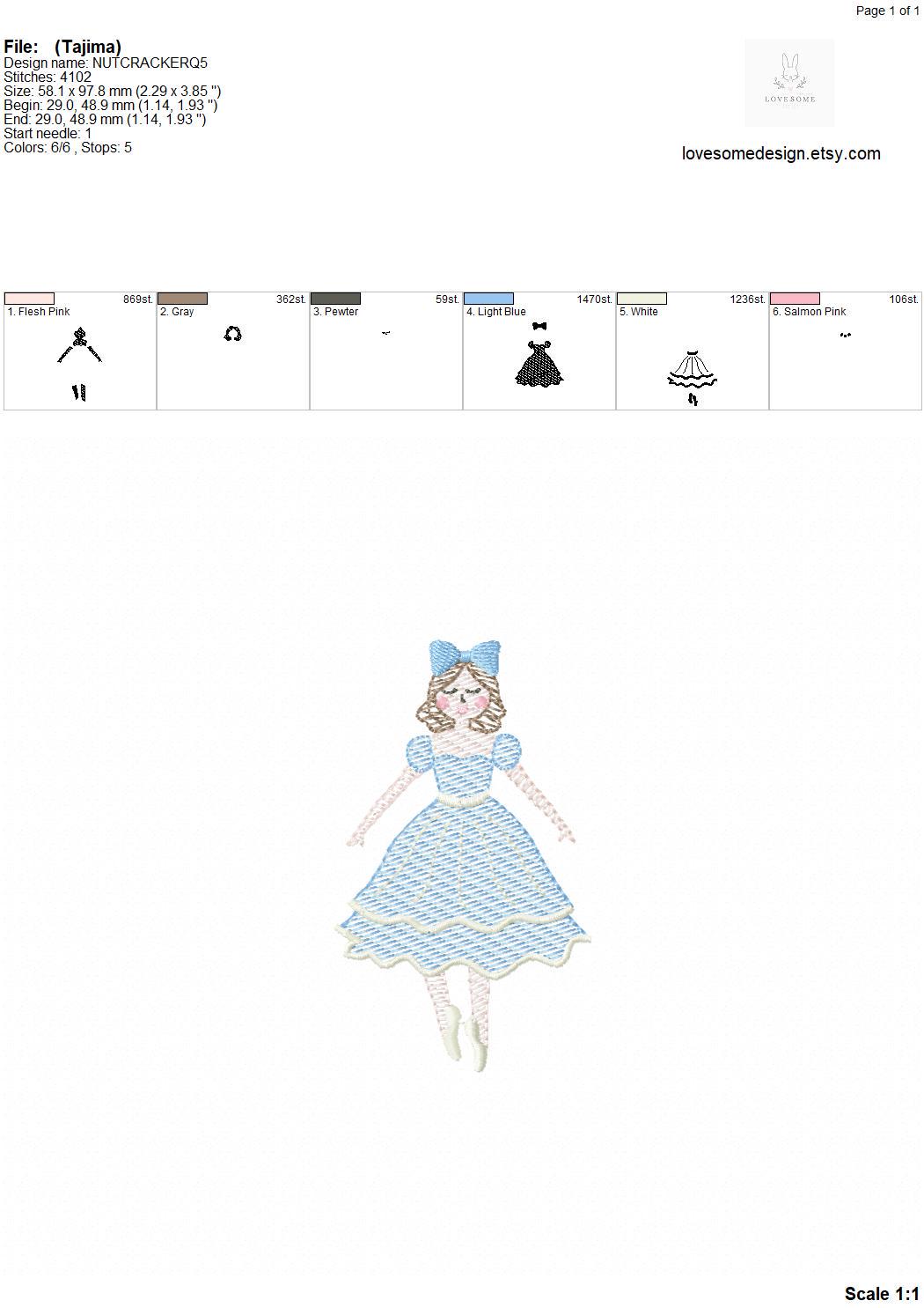 This listing includes two Nutcrackers, one Mouse King, one Ballerina and one Clara design, each in 4inch size for embroidery hoops 4x4 and bigger.
