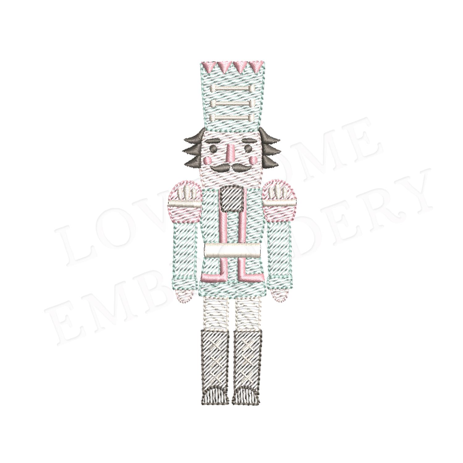 Pastel Nutcracker Quick Stitch 5x7 Fill Stitch Embroidery Design, Modern Christmas Winter Holiday Embroidery File | Lovesome Design
