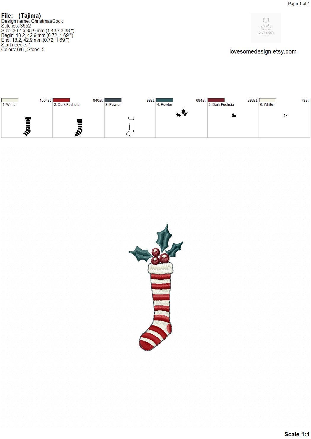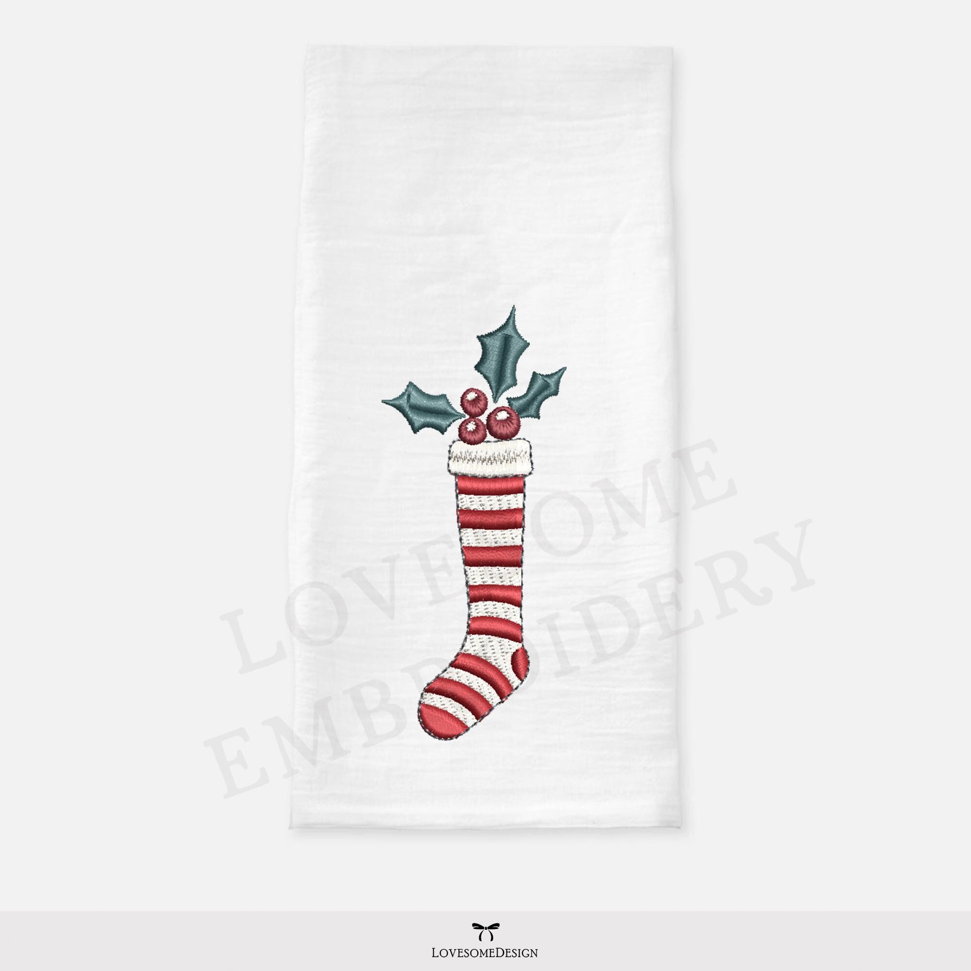 Christmas Stocking 3.5inch with Holly Embroidery Design, Classical Christmas, Winter Holiday Machine Embroidery File | Lovesome Design
