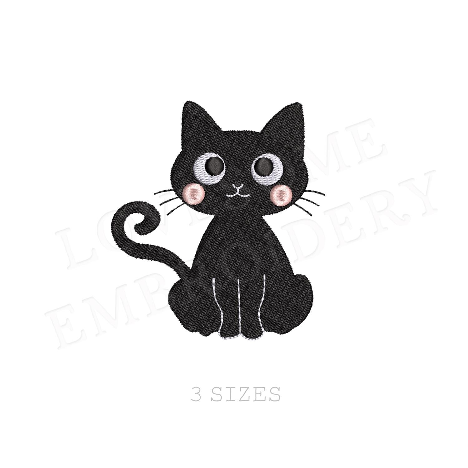 Cute Black Cat Multisize Embroidery Design in three sizes, Halloween Autumn Fall Machine Embroidery Digital Download | Lovesome Design