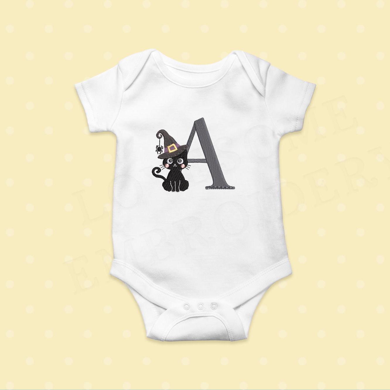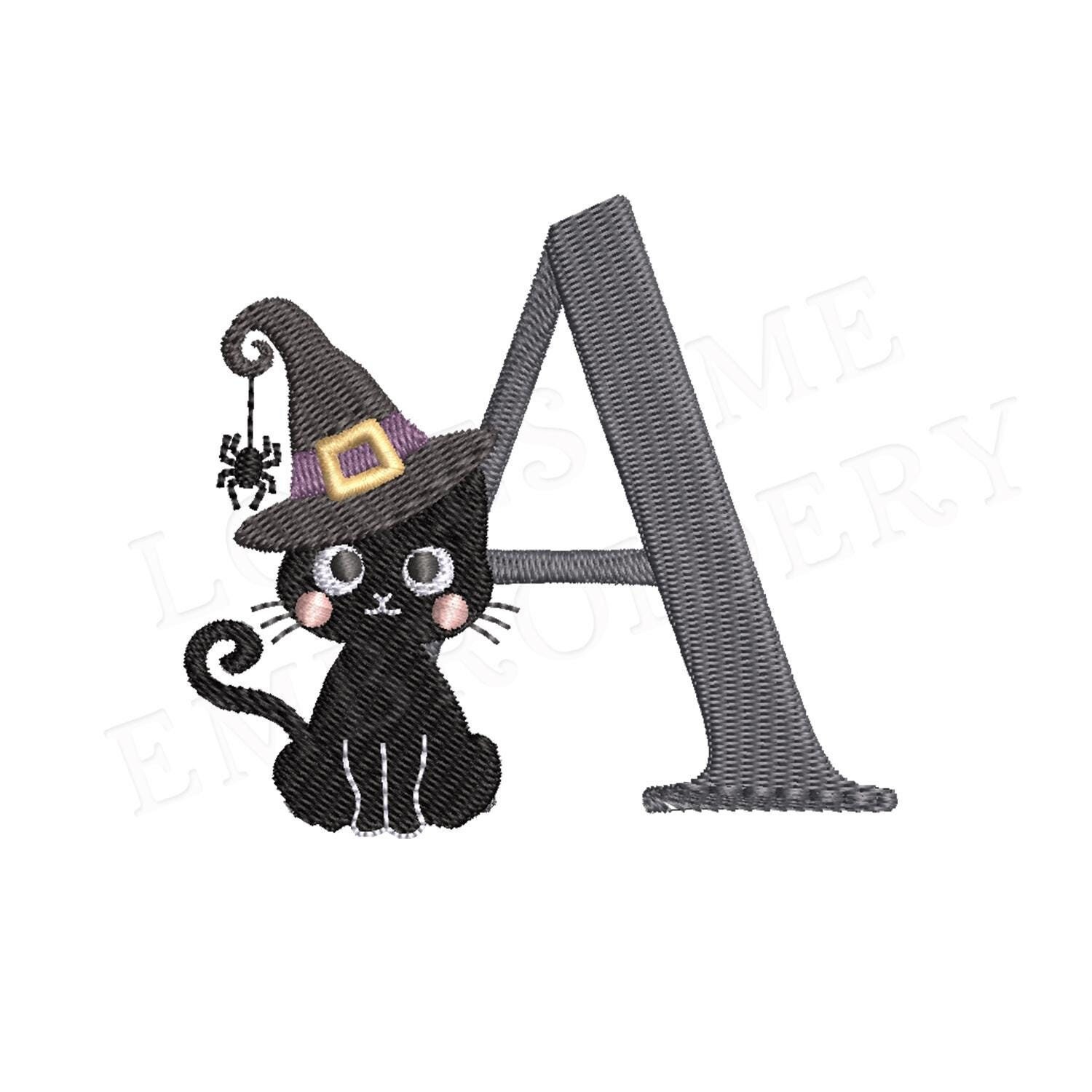 Cute Black Cat 4inch Witch Hat Alphabet A-Z Machine Embroidery Font Digital Download | Lovesome Design