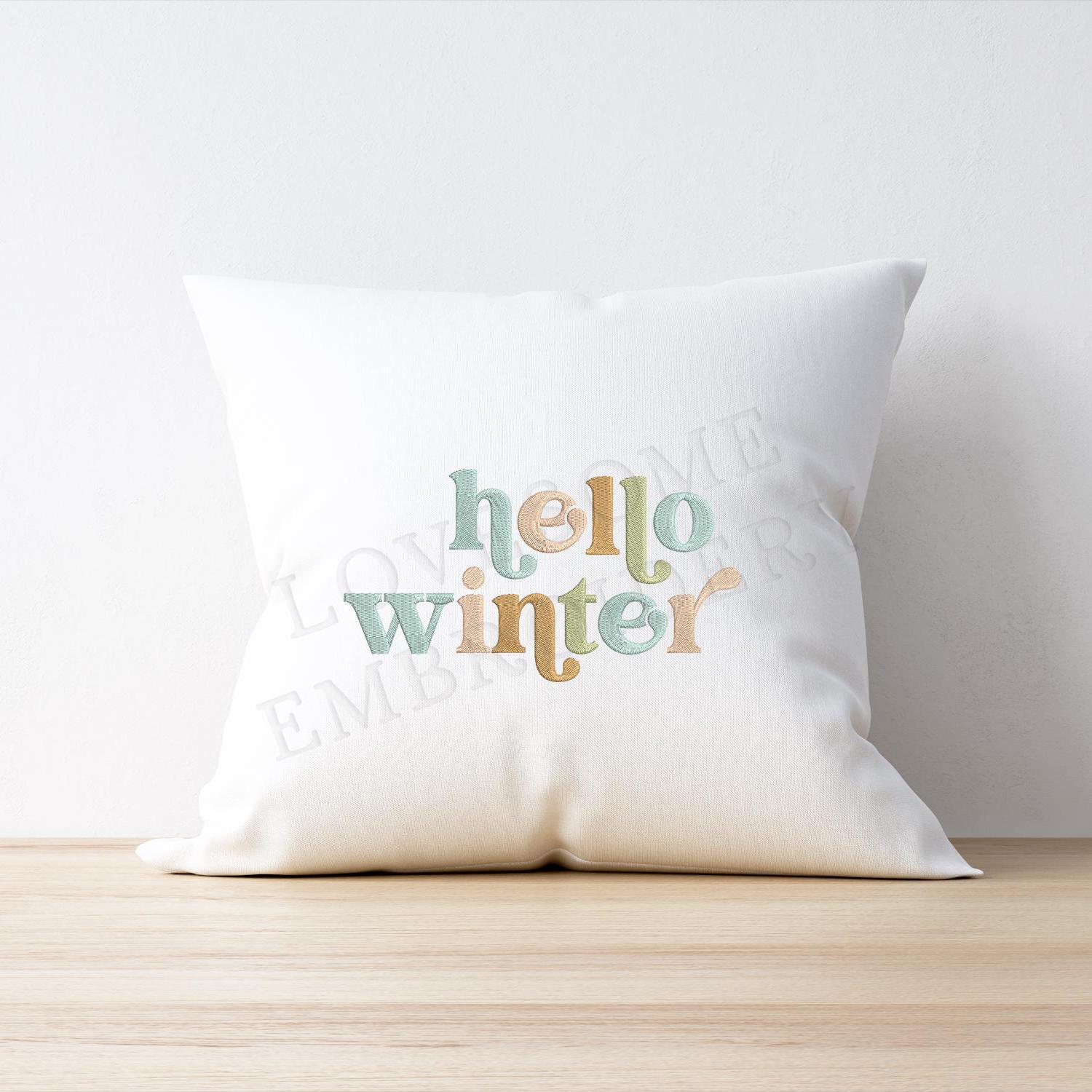 Hello Winter 5x7 Machine Embroidery Design, Retro Style Funky Winter Colorful Tshirt Embroidery File | Lovesome Design