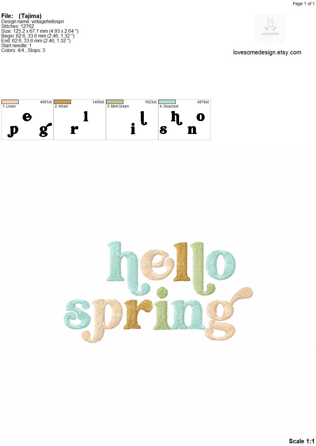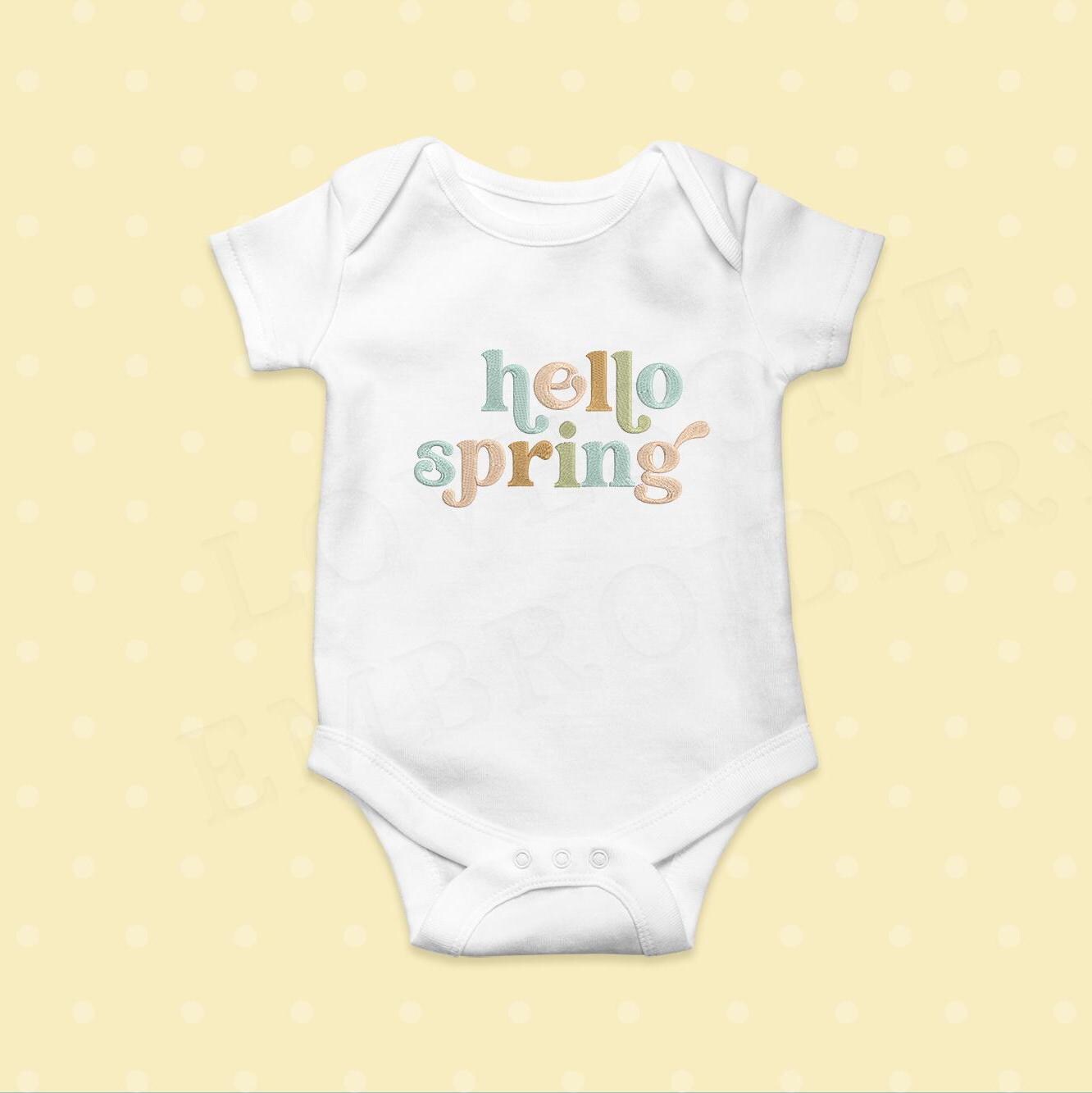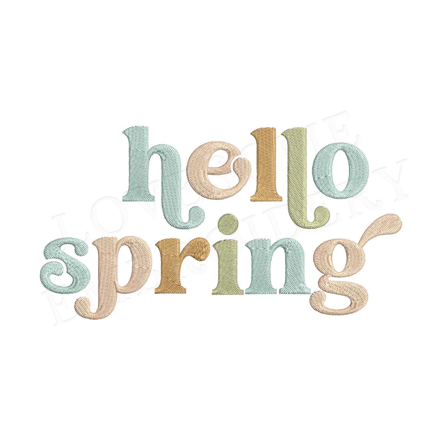 Hello Spring 5inch Machine Embroidery Design, Retro Style Funky Springtime Colorful Tshirt Embroidery File | Lovesome Design