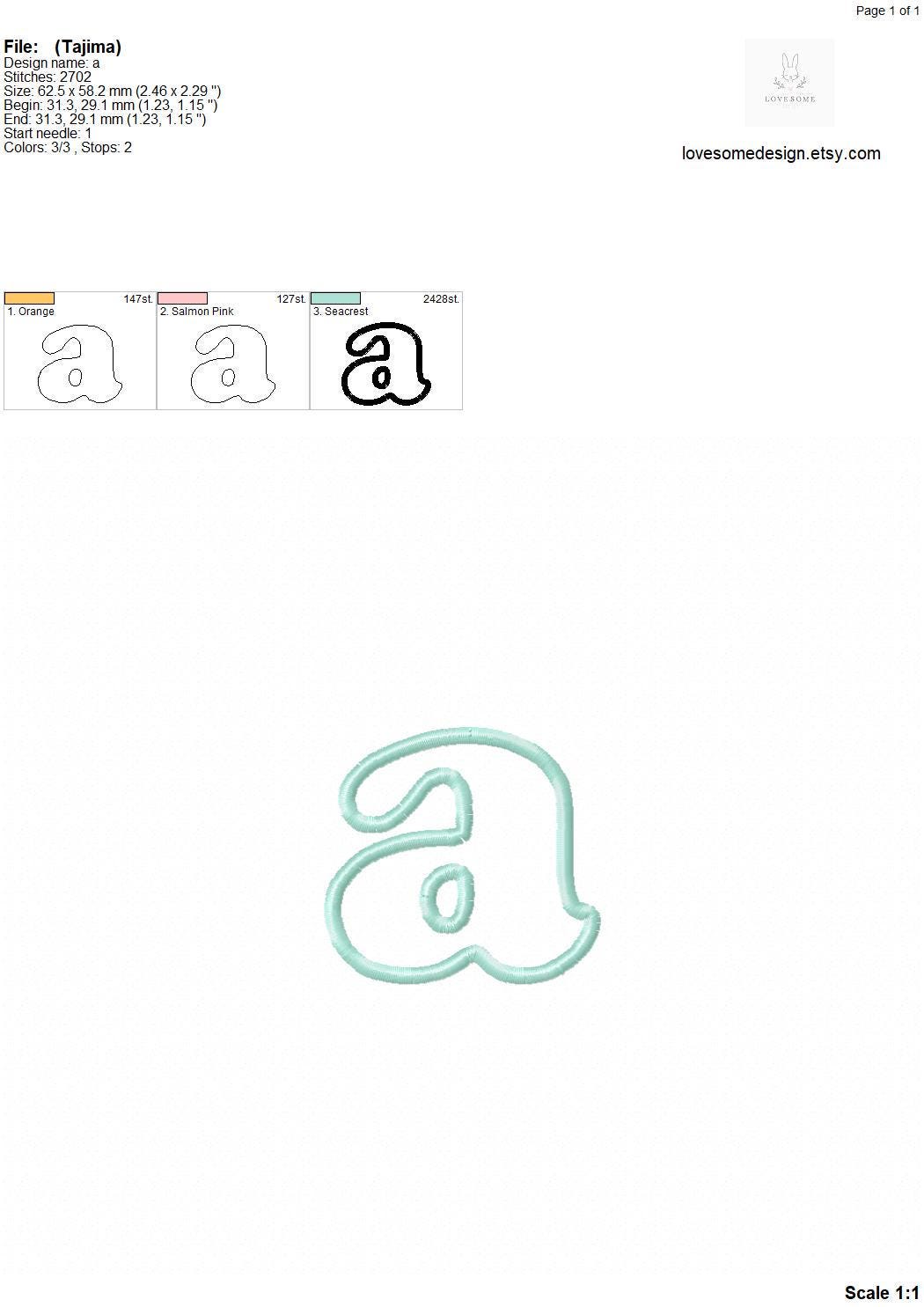 This listing features a machine embroidery font set which includes embroidery files of 26 lowercase applique letters (a-z) in 3inch size applique alphabet. (For the whole set, pls see the listing images.)