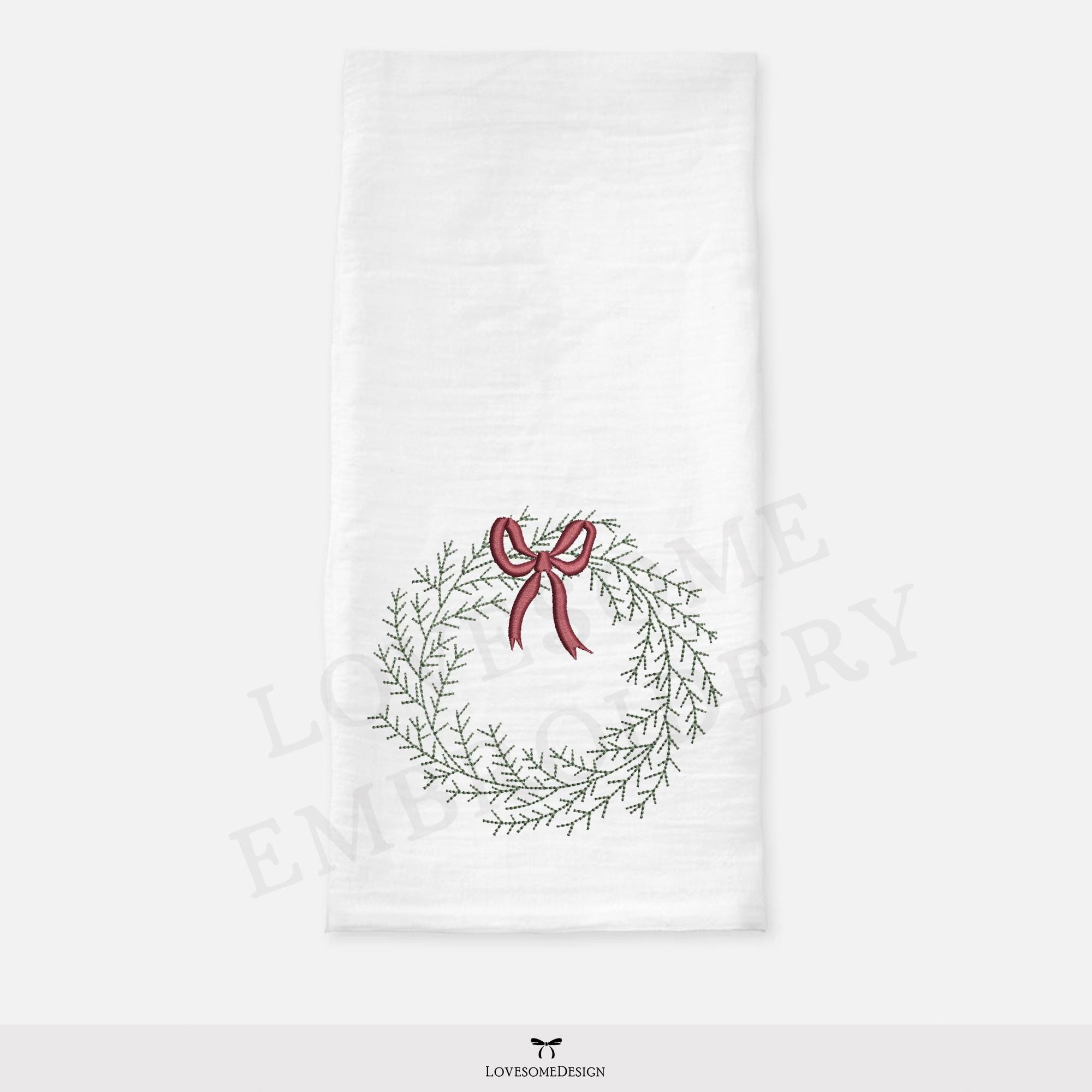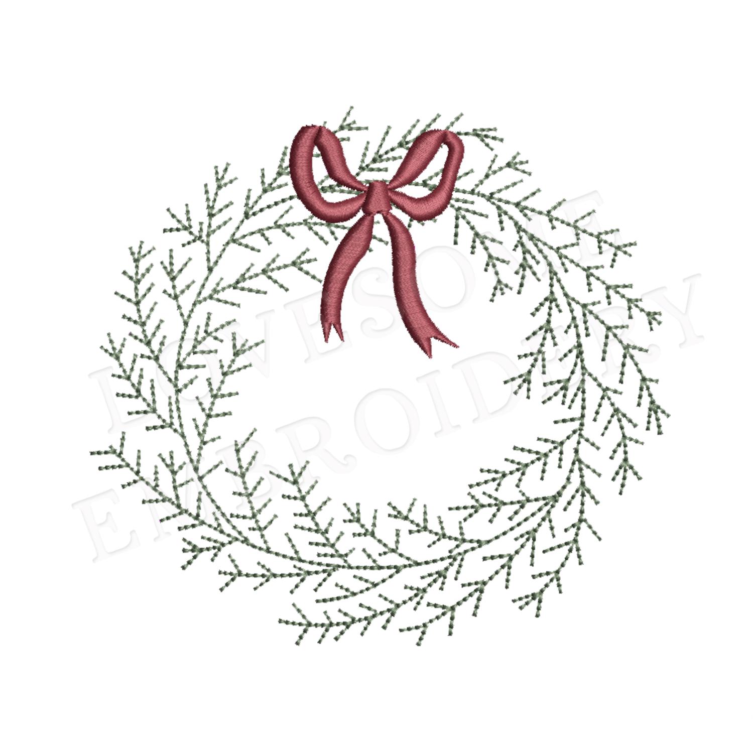 Pine Wreath Bow 4inch Machine Embroidery Design Digital Download | Lovesome Design