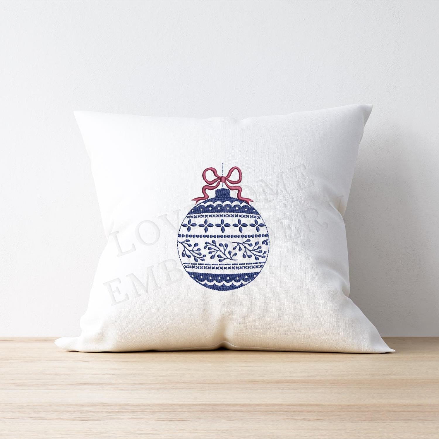 This listing features a machine embroidery file of Chinoiserie bauble with a red bow in 7 inches size.