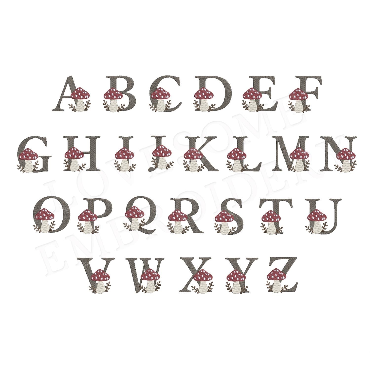 Cute Mushroom Alphabet 5inch A-Z Machine Embroidery Font Digital Download | Lovesome Design