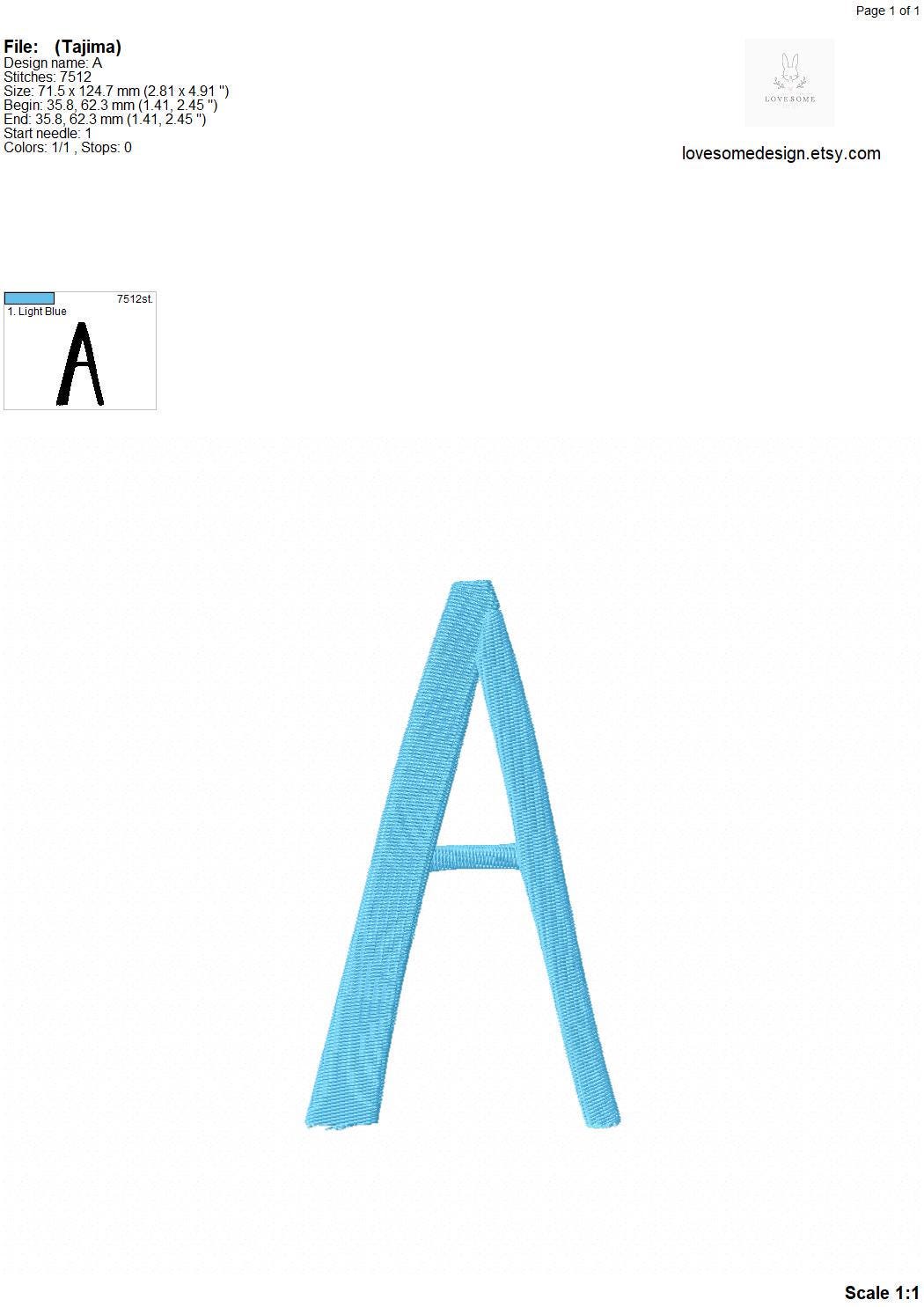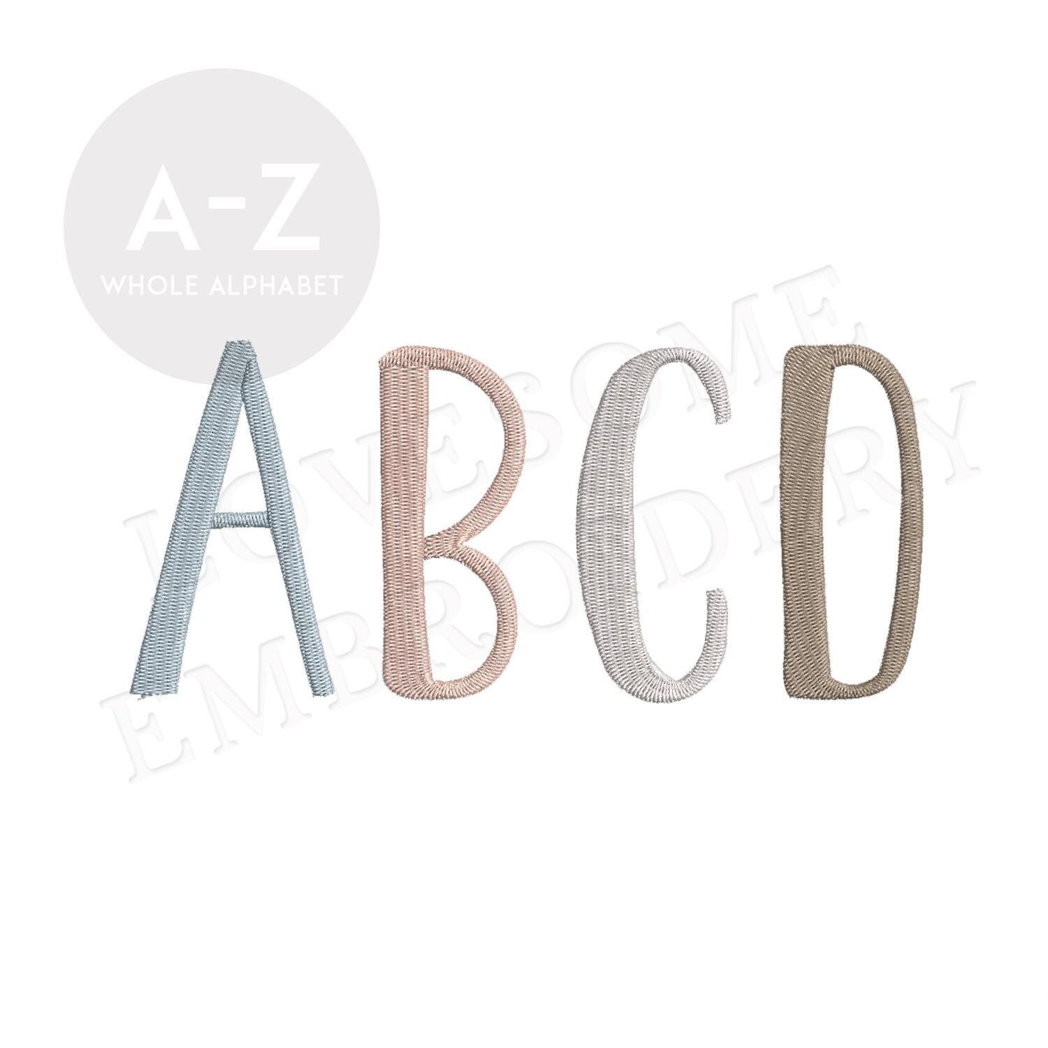 This listing features a machine embroidery font set which includes fill stitch embroidery files of 26 uppercase letters A-Z in 5inch size. (For the whole set, pls see the listing images.)