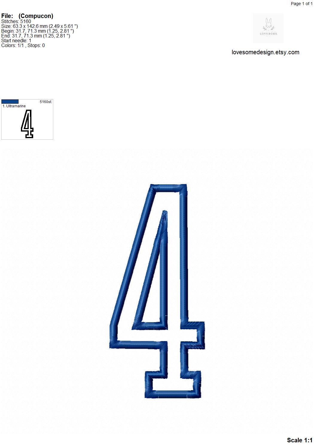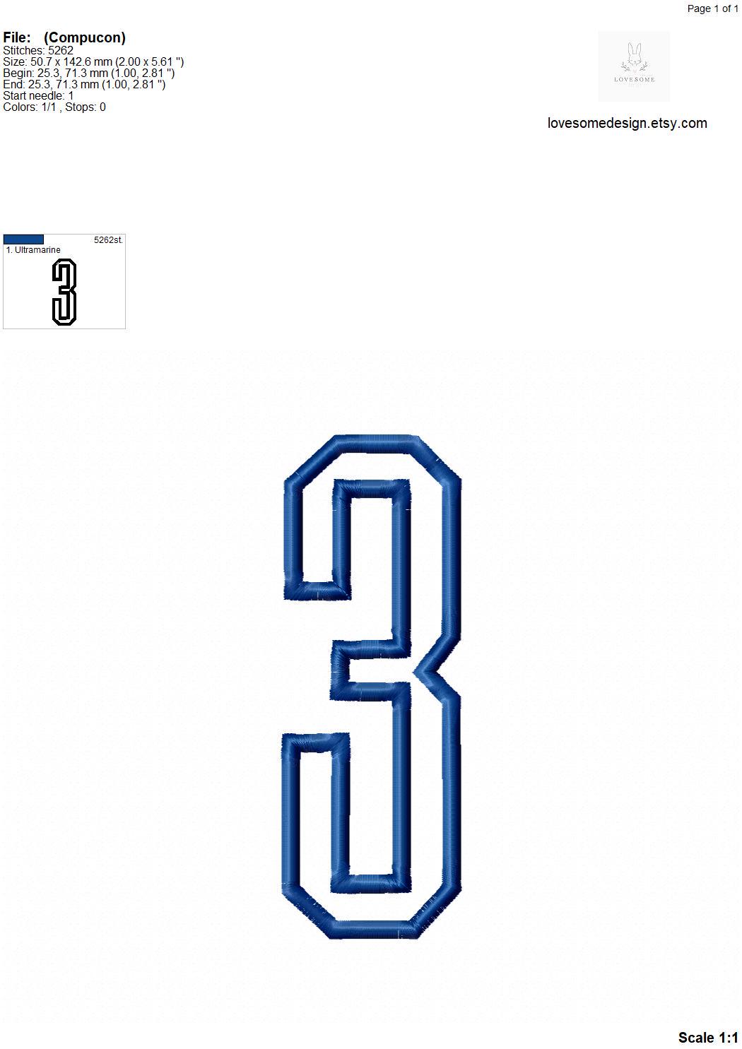 This listing features a machine embroidery tall college numbers set in satin stitch which includes embroidery files of 10 numbers in 6inch size. (For the whole set, pls see the listing images.)
