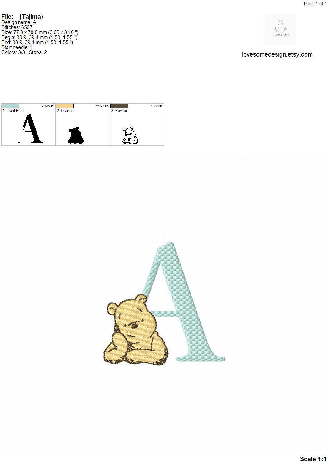 Classic Pooh Bear 3inch Alphabet A-Z Machine Embroidery Font Baby Embroidery Digital Download | Lovesome Design