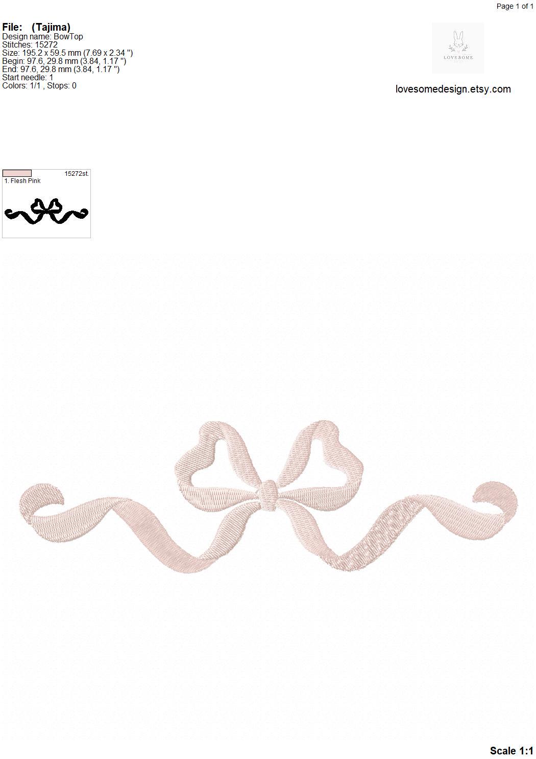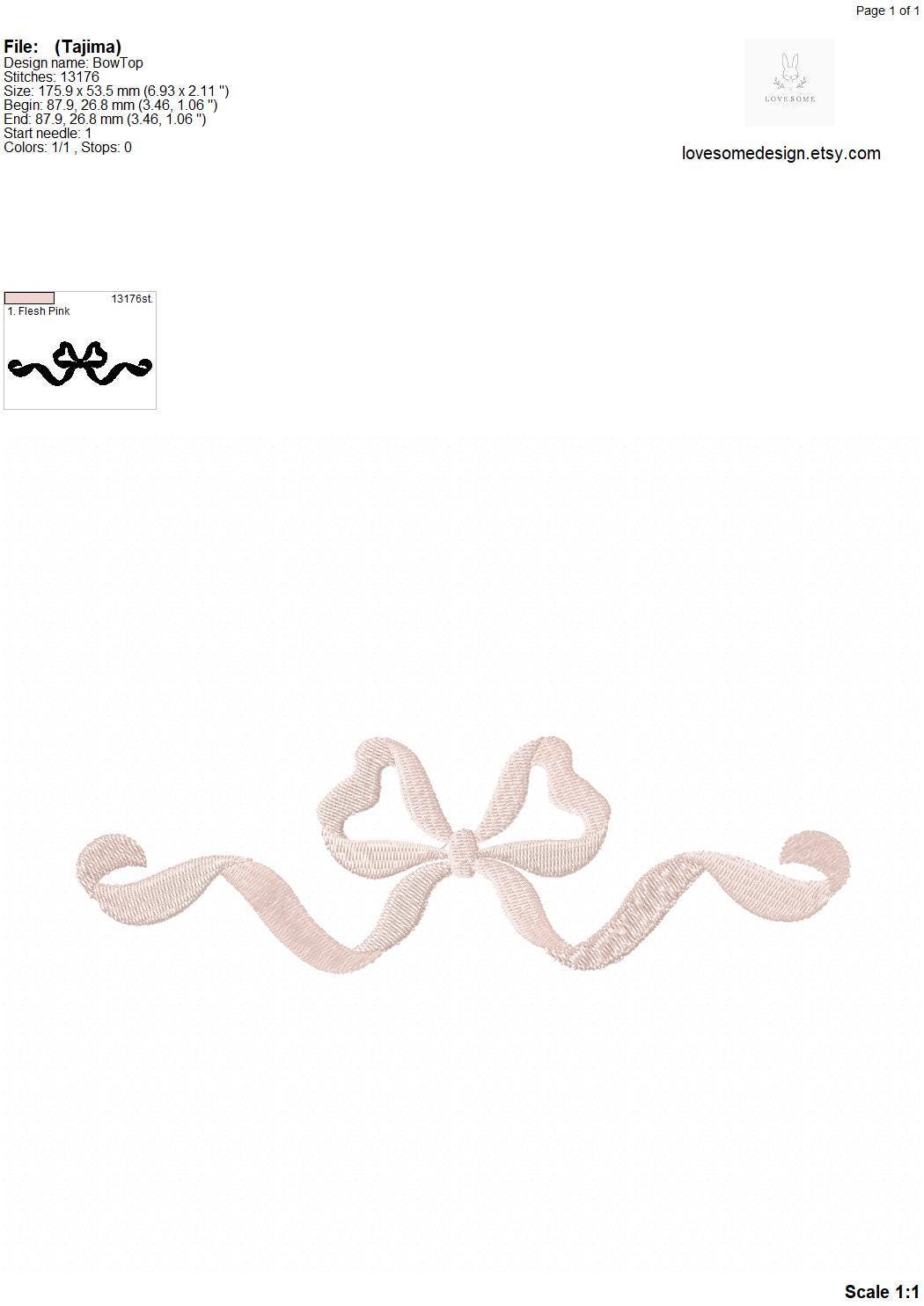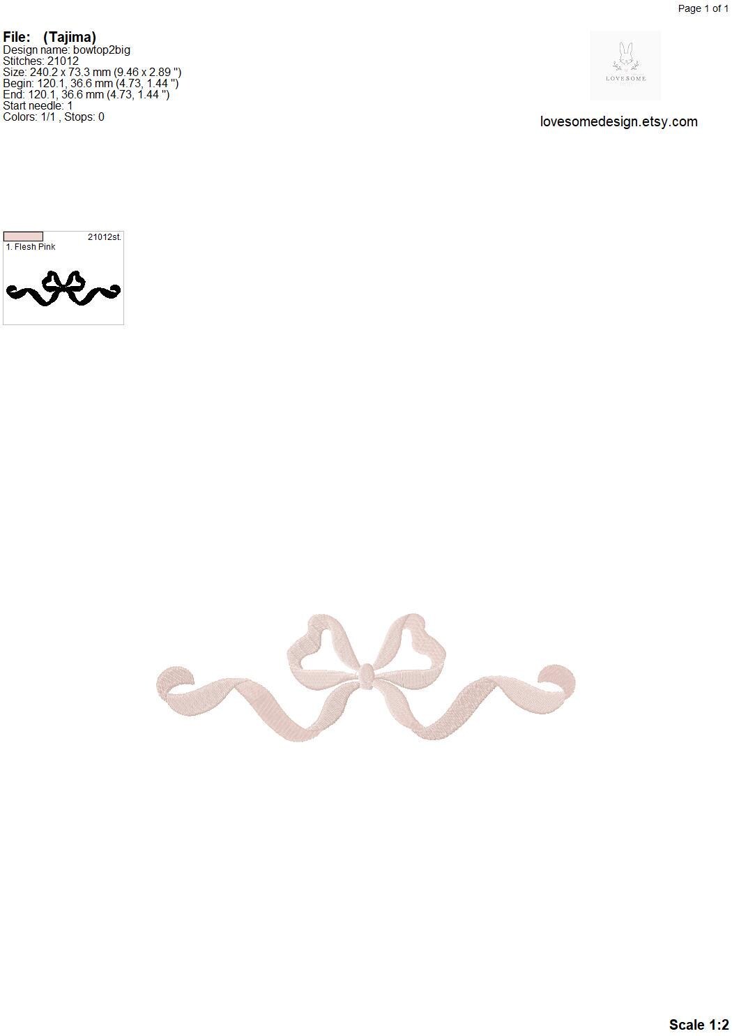 This listing includes one bow design for machine embroidery in three sizes, appr. in 7inch, 8inch and 10inch size.