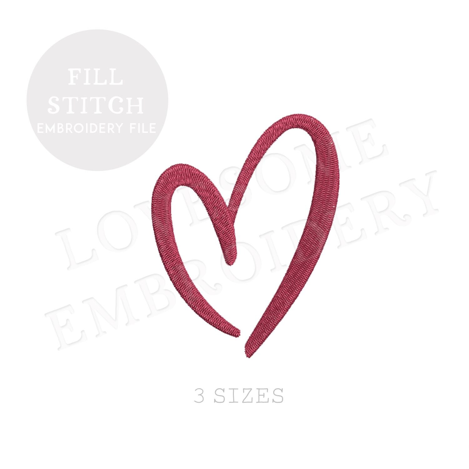 Trendy Heart Three Big Sizes Embroidery Design, Stylish Heart Fill Stitch Valentines Day Machine Embroidery Digital File | Lovesome Design