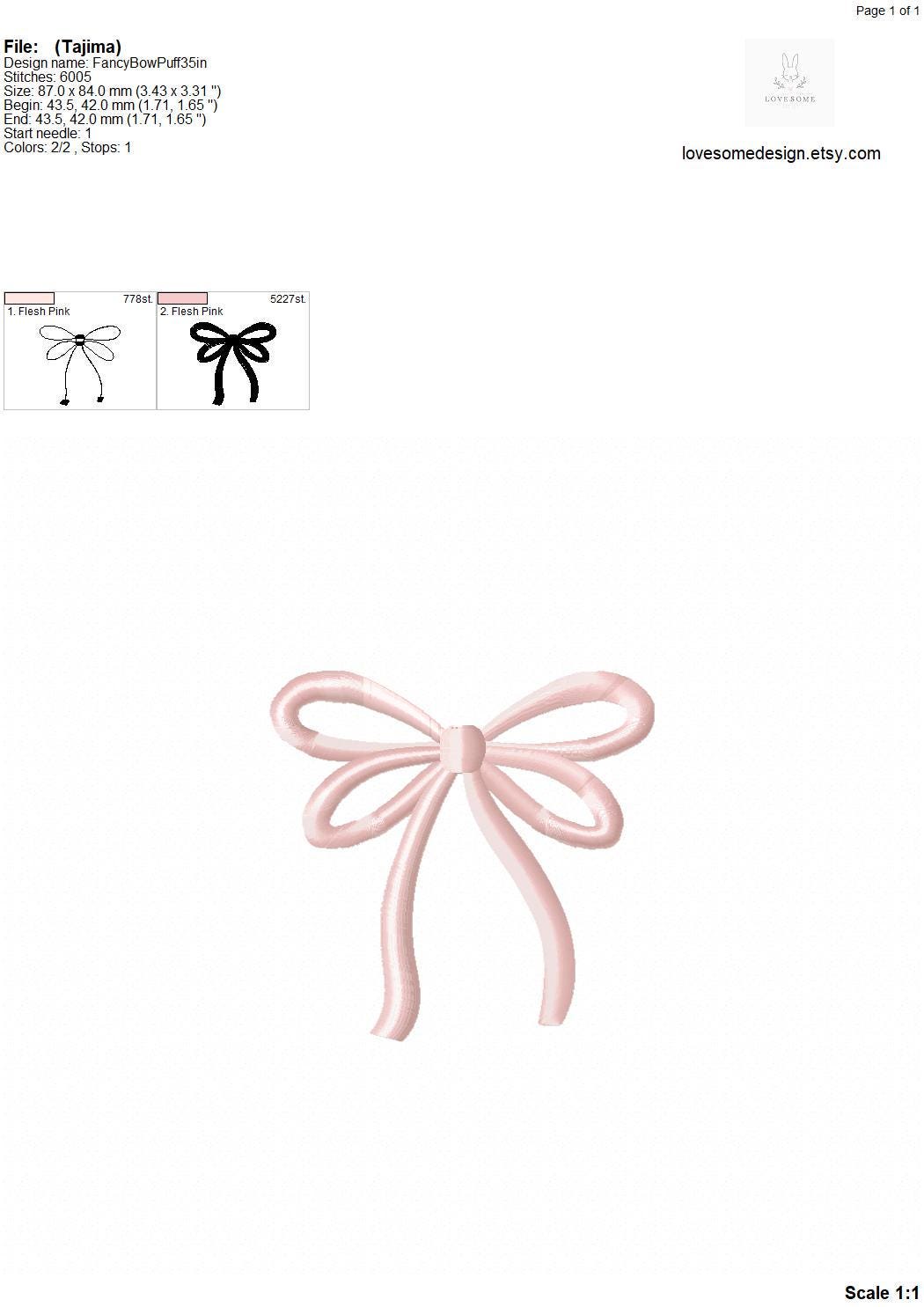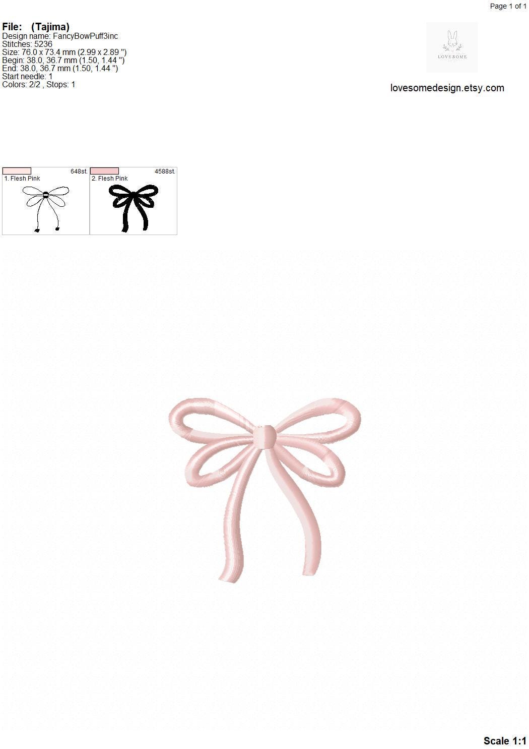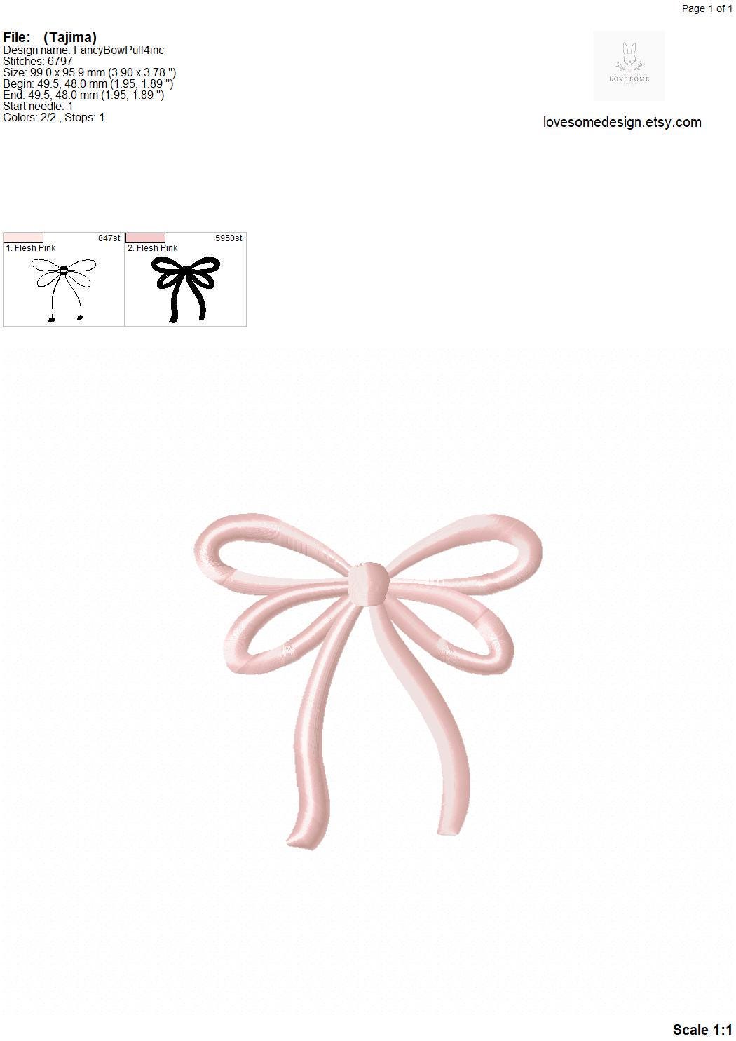 Fancy Bow Puff 3D Three Sizes Embroidery Design, Puff Stitch Cute Ribbon Top Bow Machine Embroidery Digital File | Lovesome Design