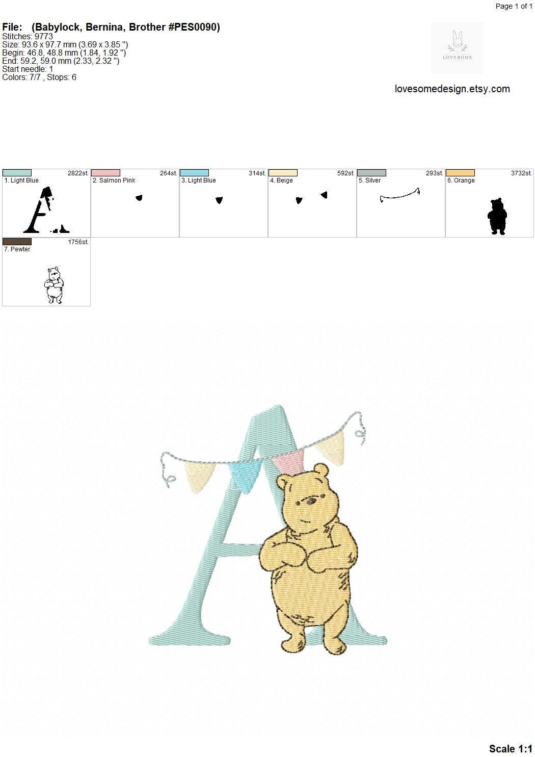 Classic Pooh Bear 4inch Bunting Alphabet A-Z Machine Embroidery Font Baby Embroidery Digital Download | Lovesome Design