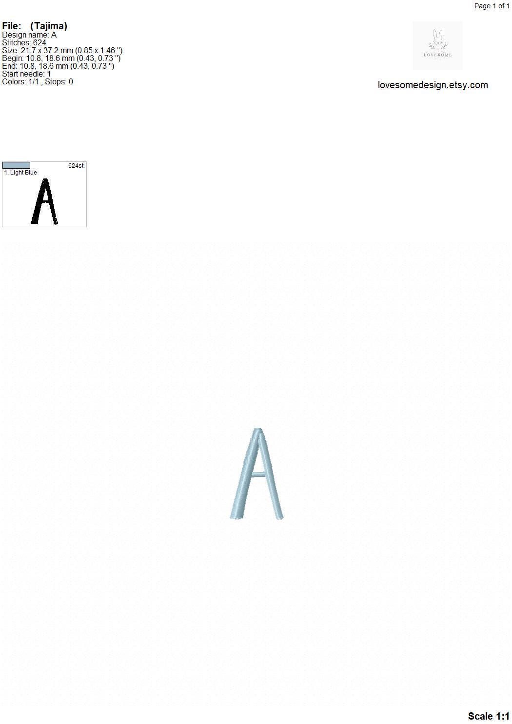 This listing features a machine embroidery font set which includes embroidery files of 26 uppercase letters A-Z in 1.5inch size. (For the whole set, pls see the listing images.)