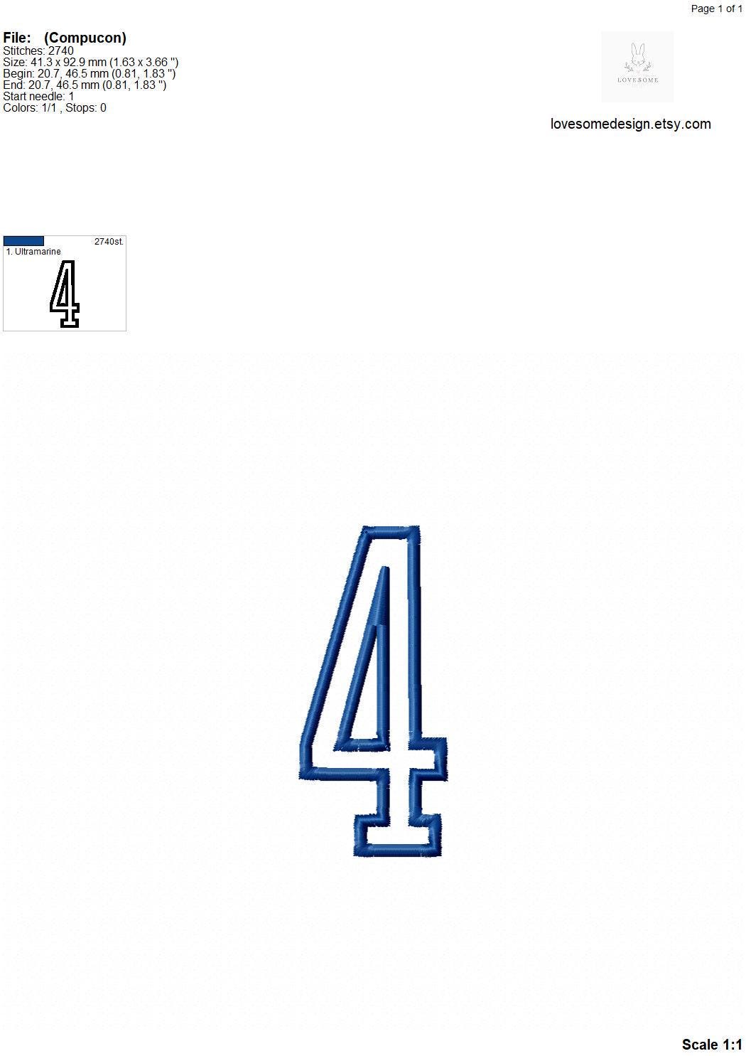 This listing features a machine embroidery tall college numbers set in satin stitch which includes embroidery files of 10 numbers in 4inch size. (For the whole set, pls see the listing images.)