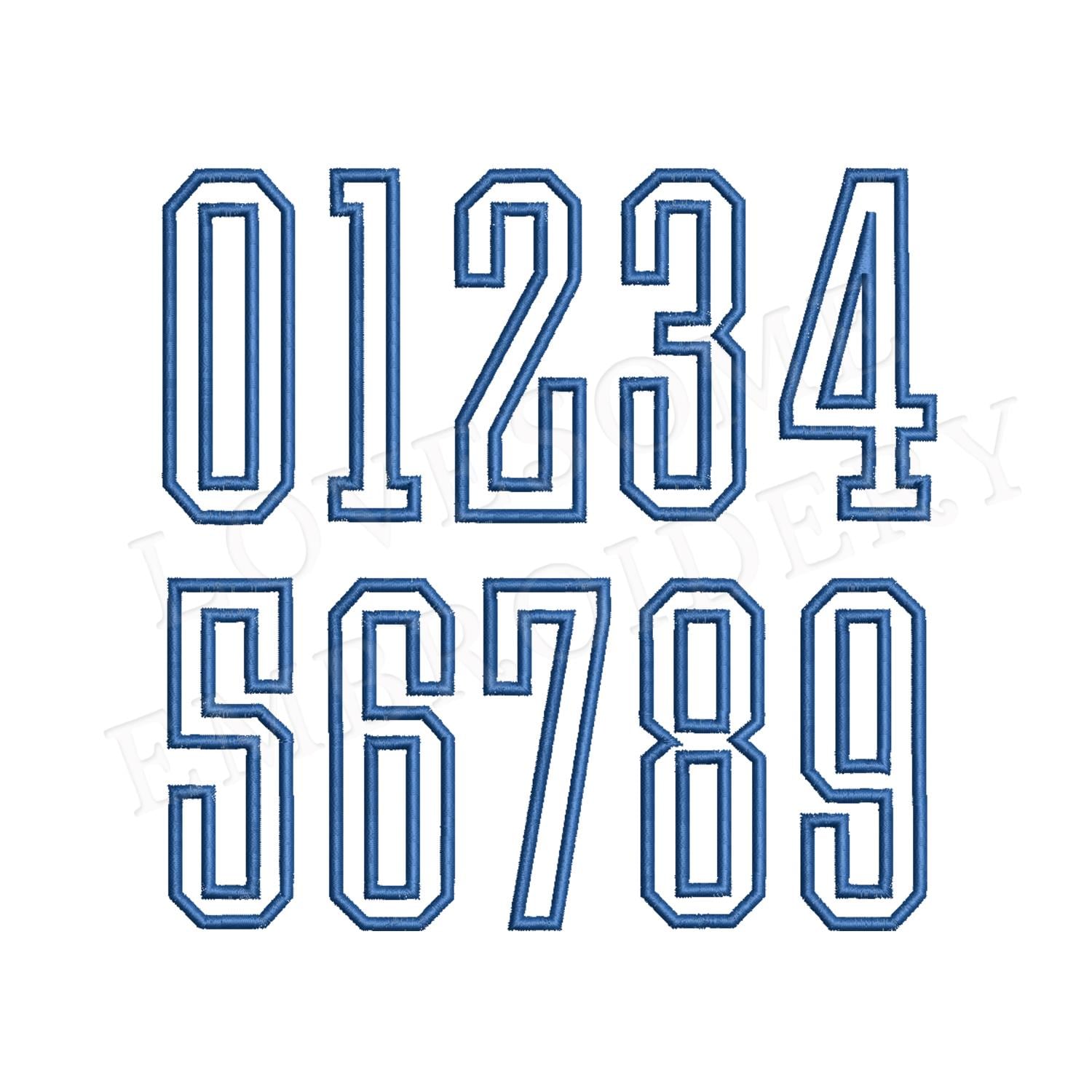 Tall College Satin Outline 4inch Numbers 0-9 Machine Embroidery Sports Numbers, Varsity Outline Embroidery Numbers | Lovesome Design