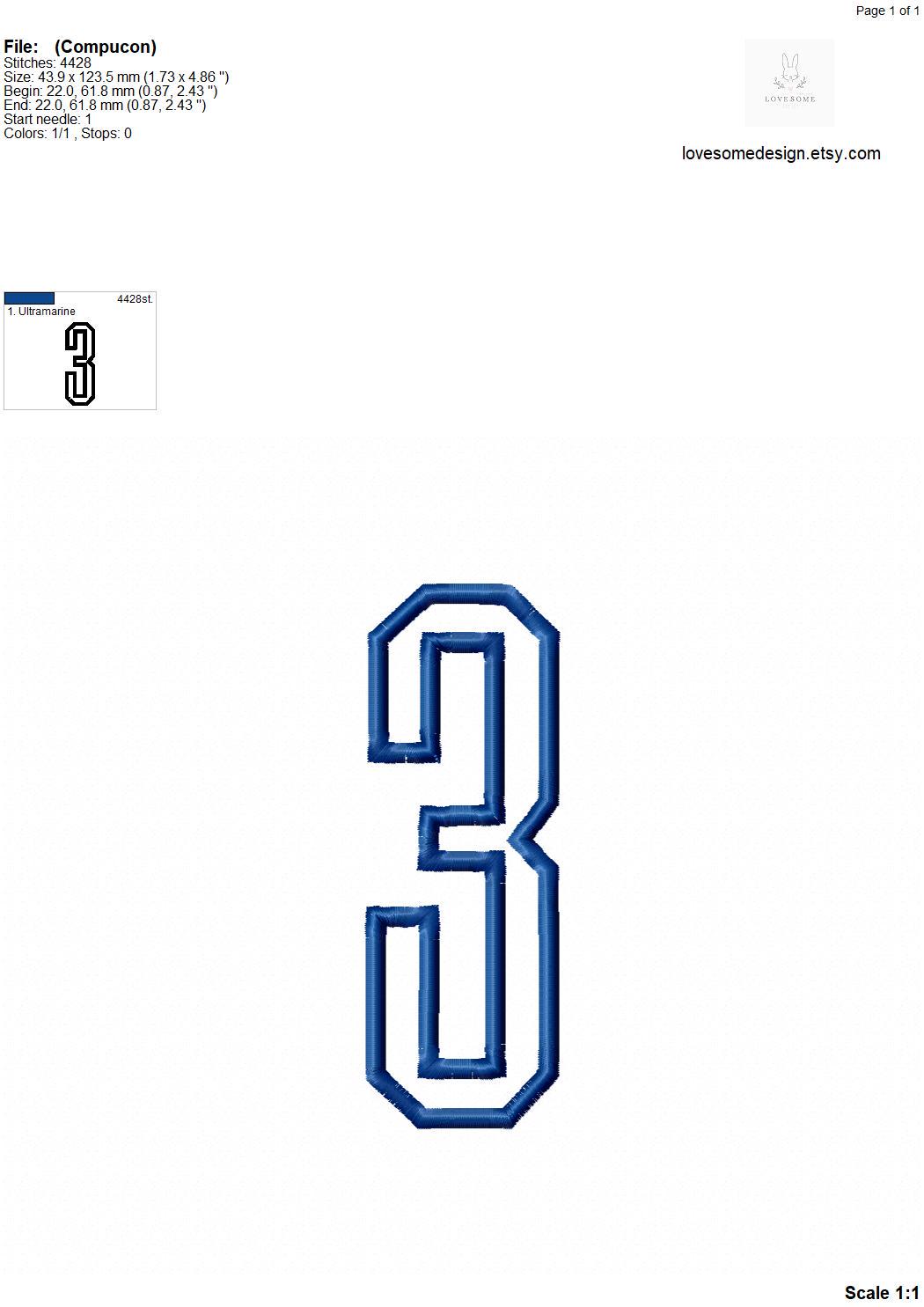 This listing features a machine embroidery tall college numbers set in satin stitch which includes embroidery files of 10 numbers in 5inch size. (For the whole set, pls see the listing images.)