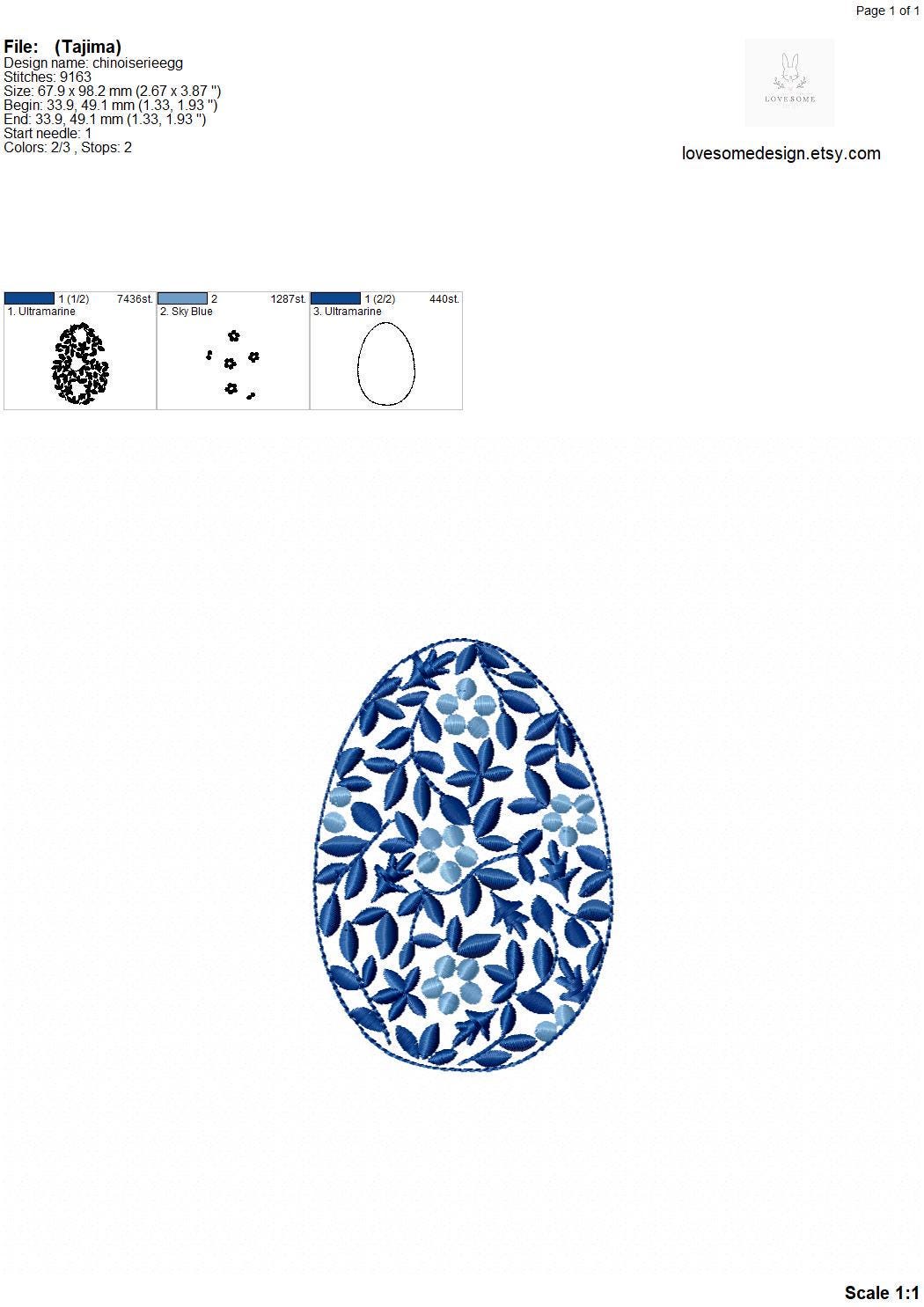 Chinoiserie Egg 4inch Machine Embroidery Design Digital Download | Lovesome Design