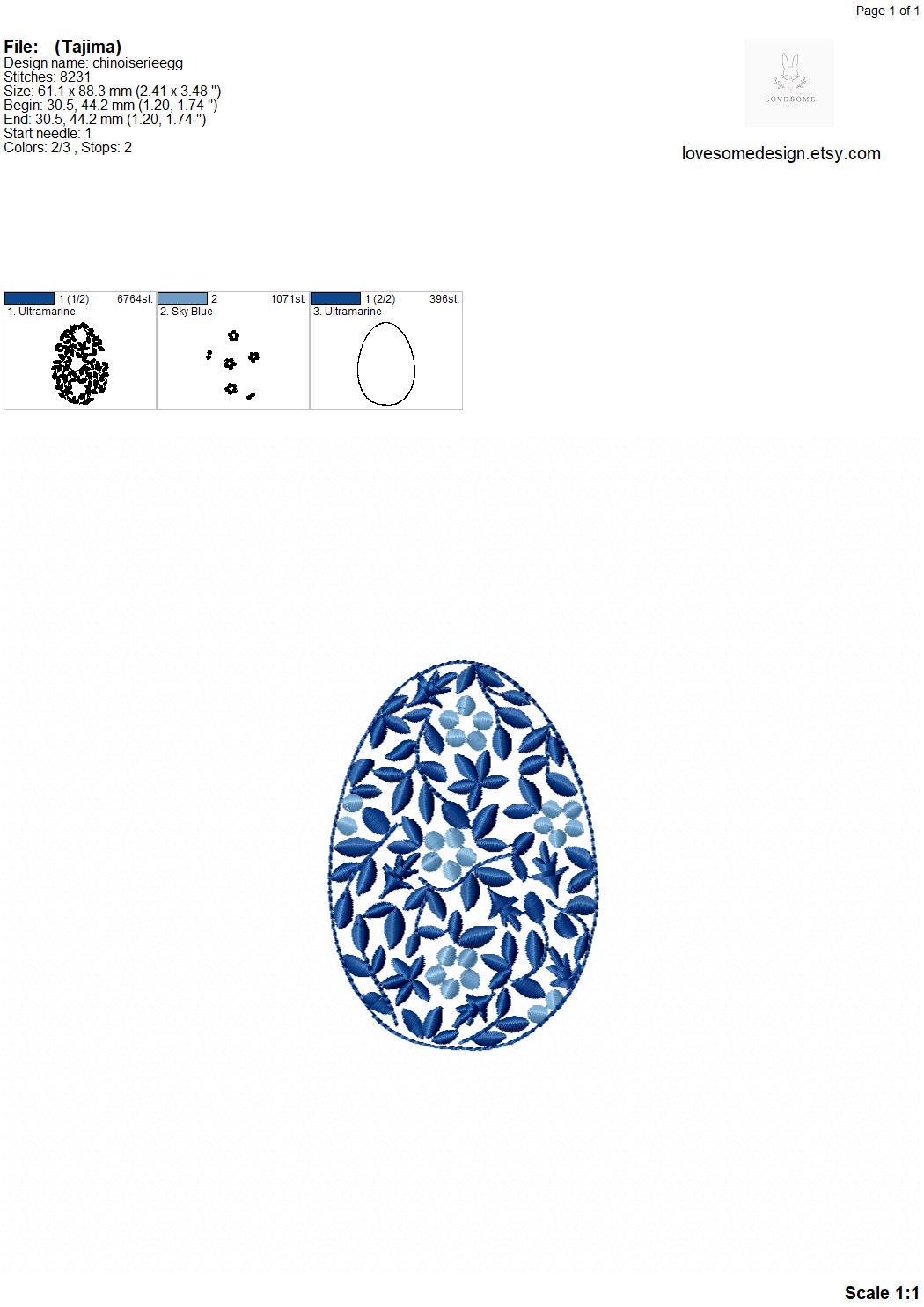This listing features a machine embroidery file of Chinoiserie floral egg in 3.5 inches size.