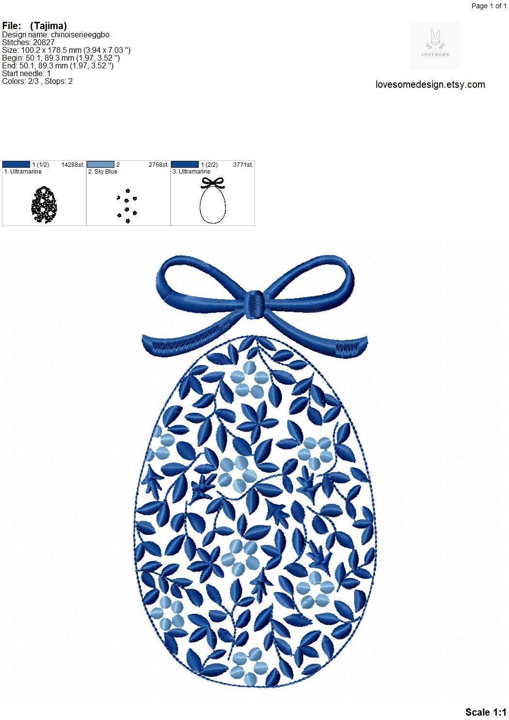 This listing features a machine embroidery file of Chinoiserie floral egg with a cute bow in 7 inches size.