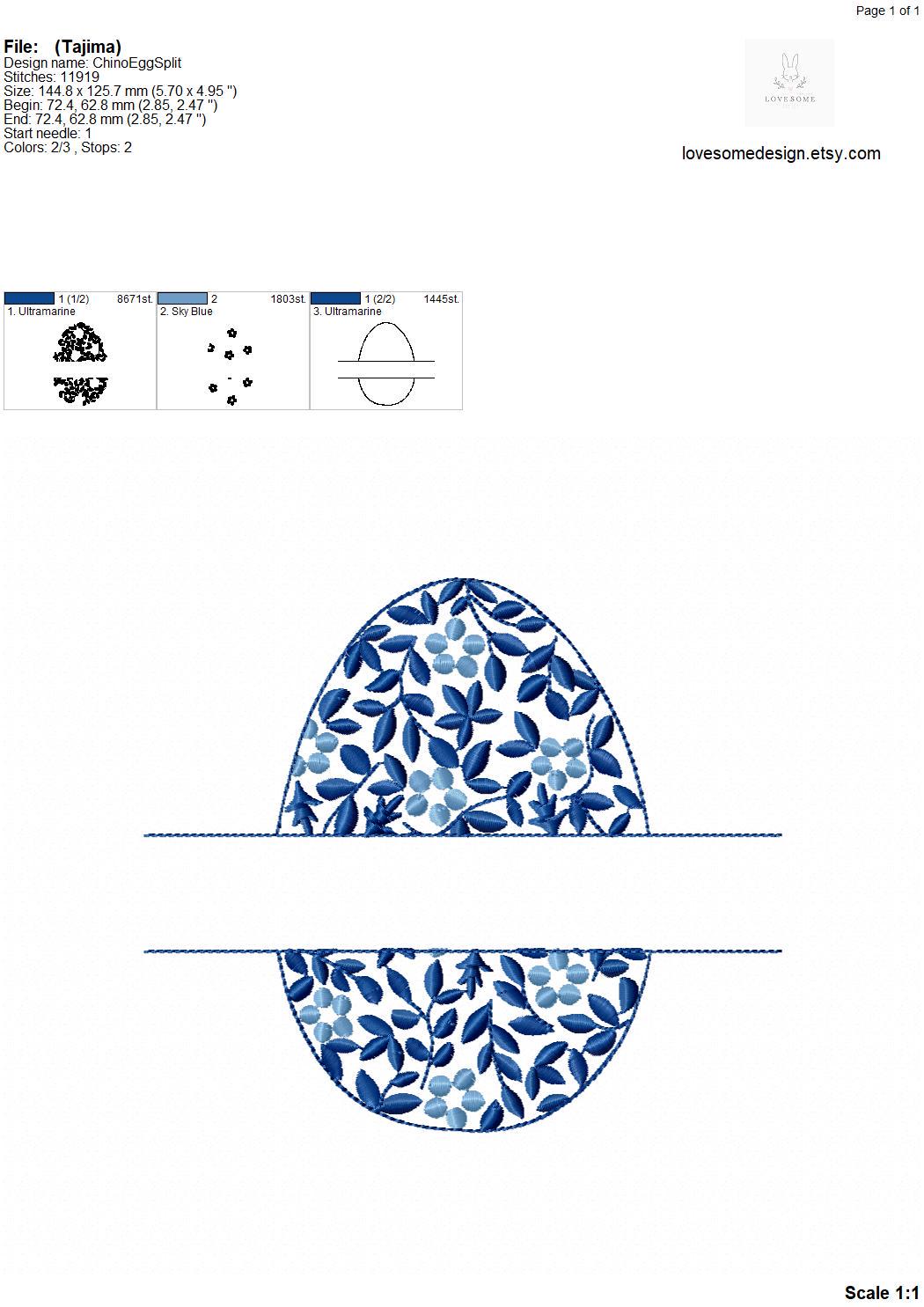 This listing features a machine embroidery file of Chinoiserie floral split egg in 6 inches size.