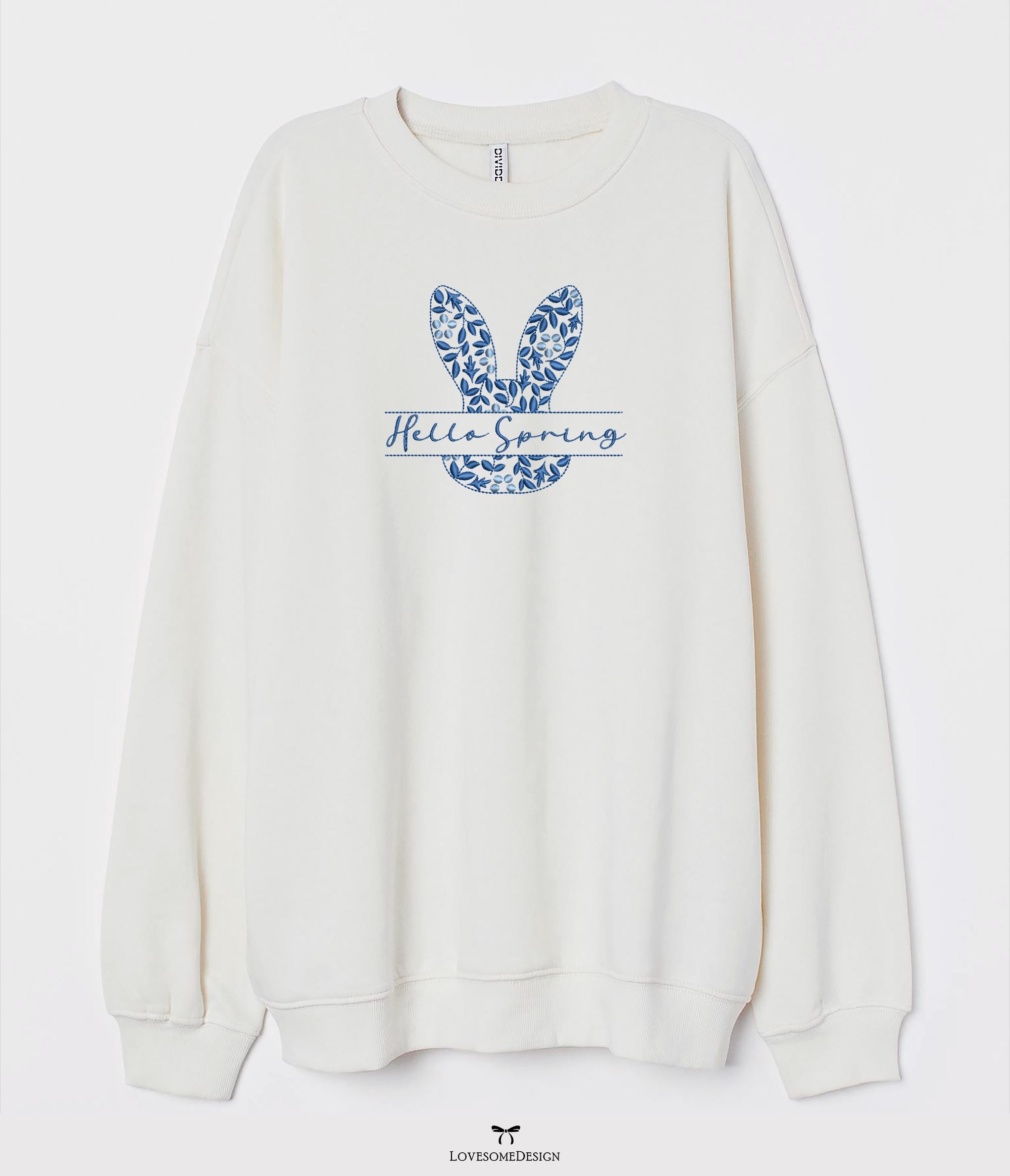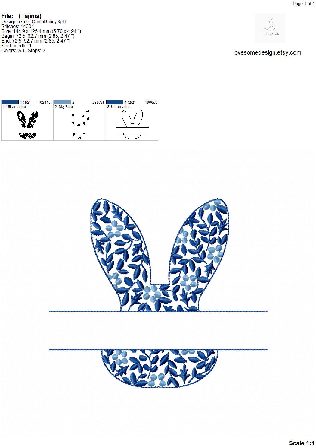This listing features a machine embroidery file of Chinoiserie floral split bunny in 6 inches size.